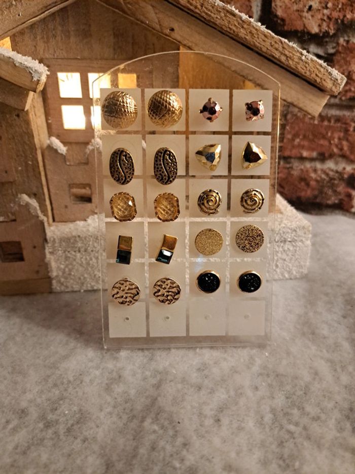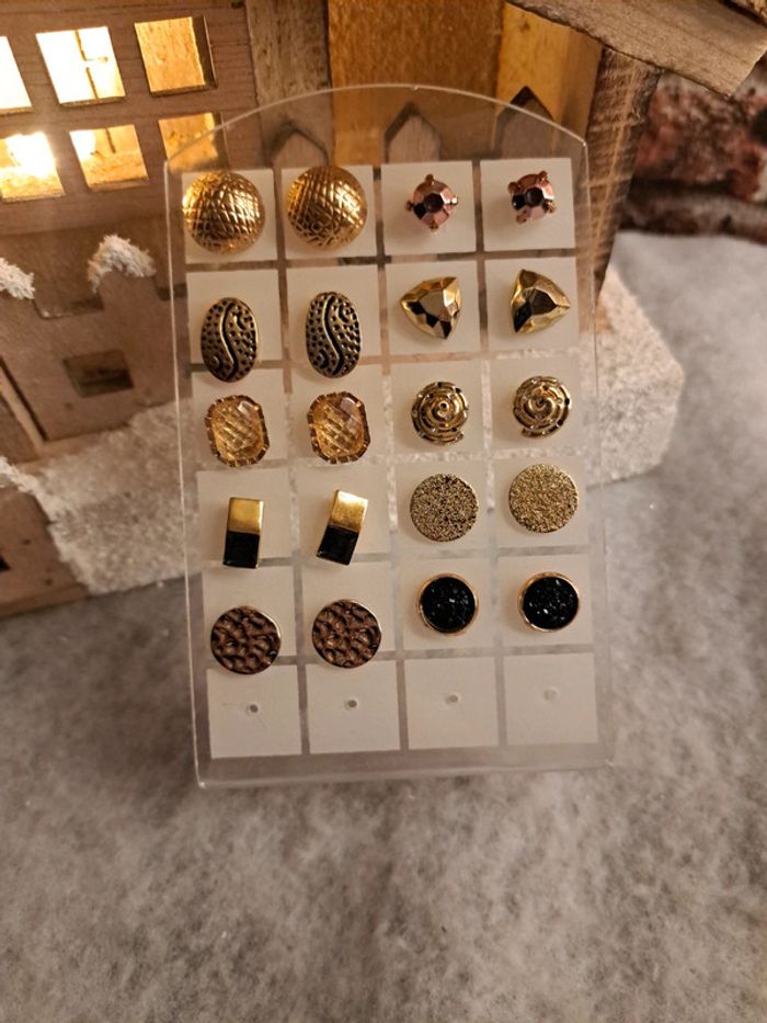 Lot de boucles d'oreilles puces doré noir - photo numéro 1