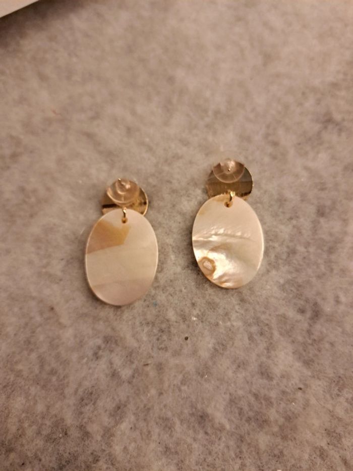 Boucles d'oreilles pendante en nacre crème blanc - photo numéro 7