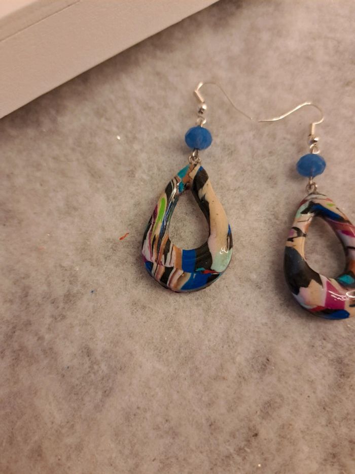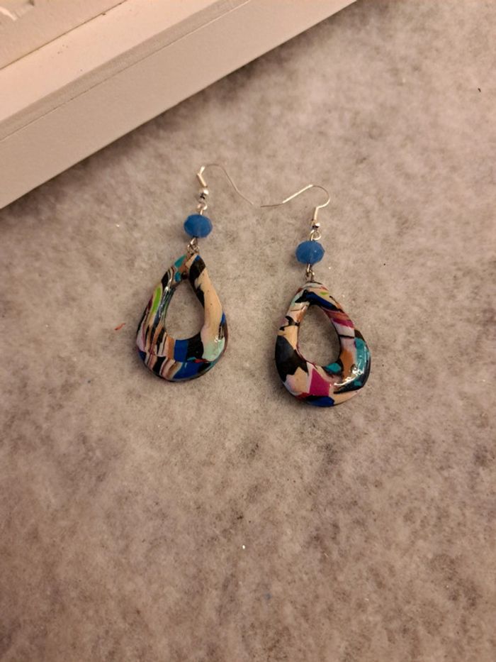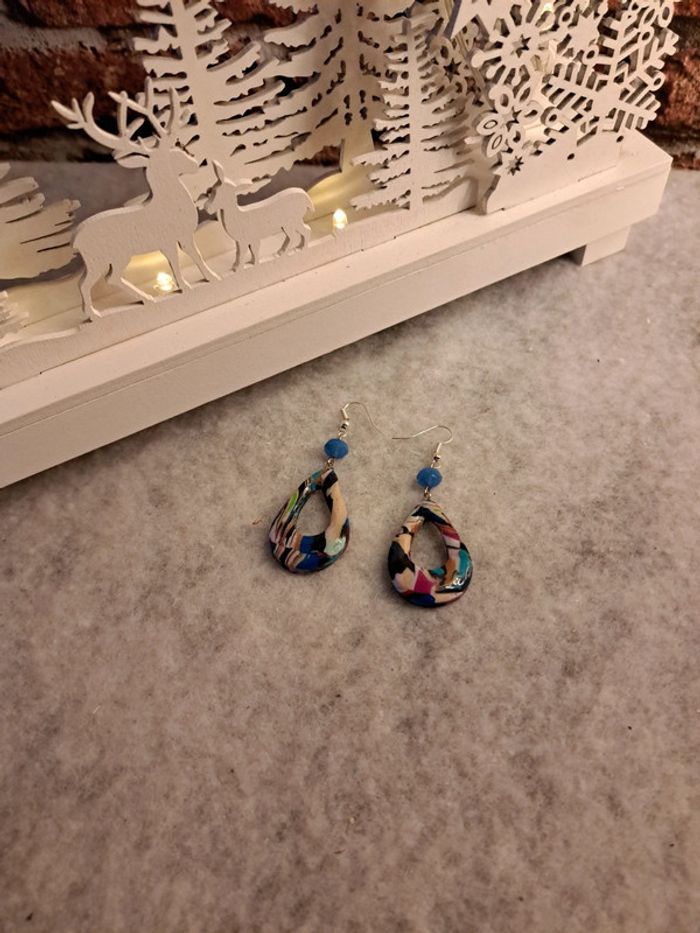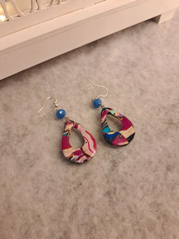 Boucles d'oreilles pendante avec pâte polymere multicolore