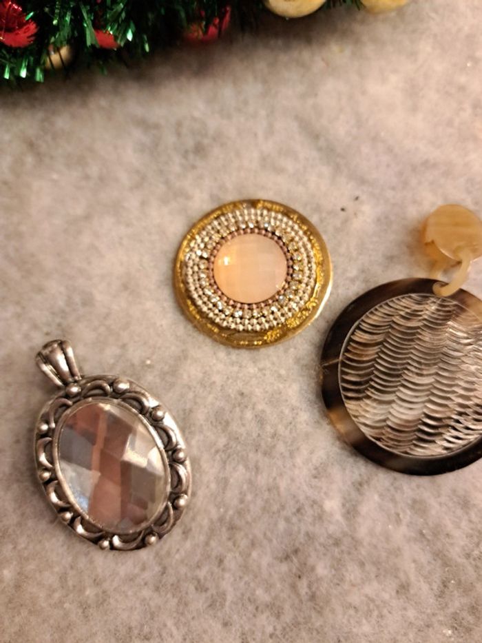 Lot de gros pendentifs marron doré argenté - photo numéro 3