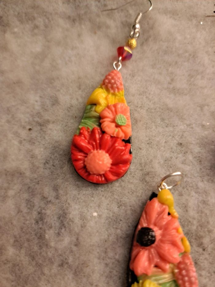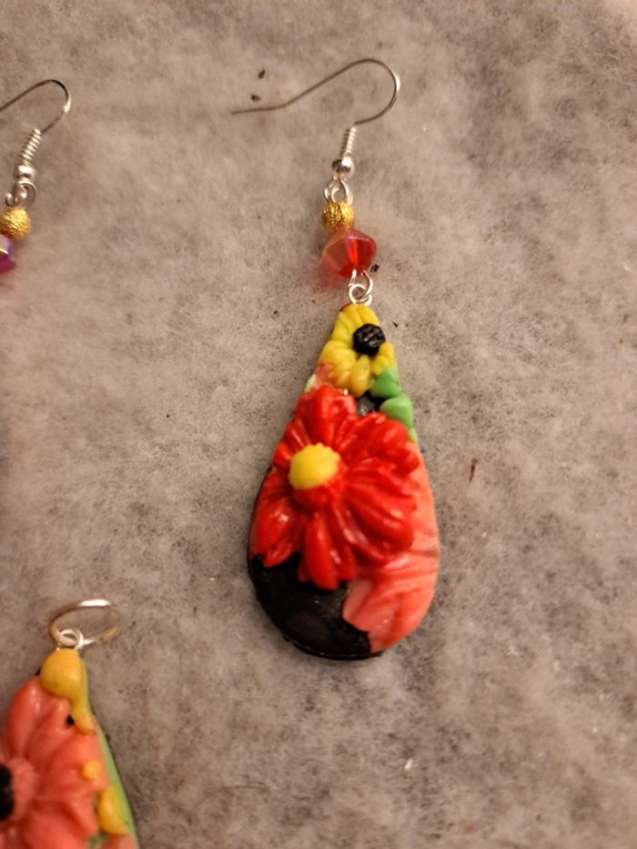 Parrurre boucles d'oreilles et pendentif florale pâte polymere multicolore - photo numéro 9