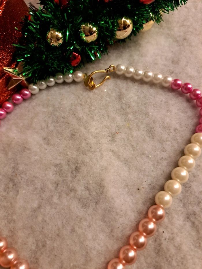 Collier chic rose fushia pastel et blanc - photo numéro 4