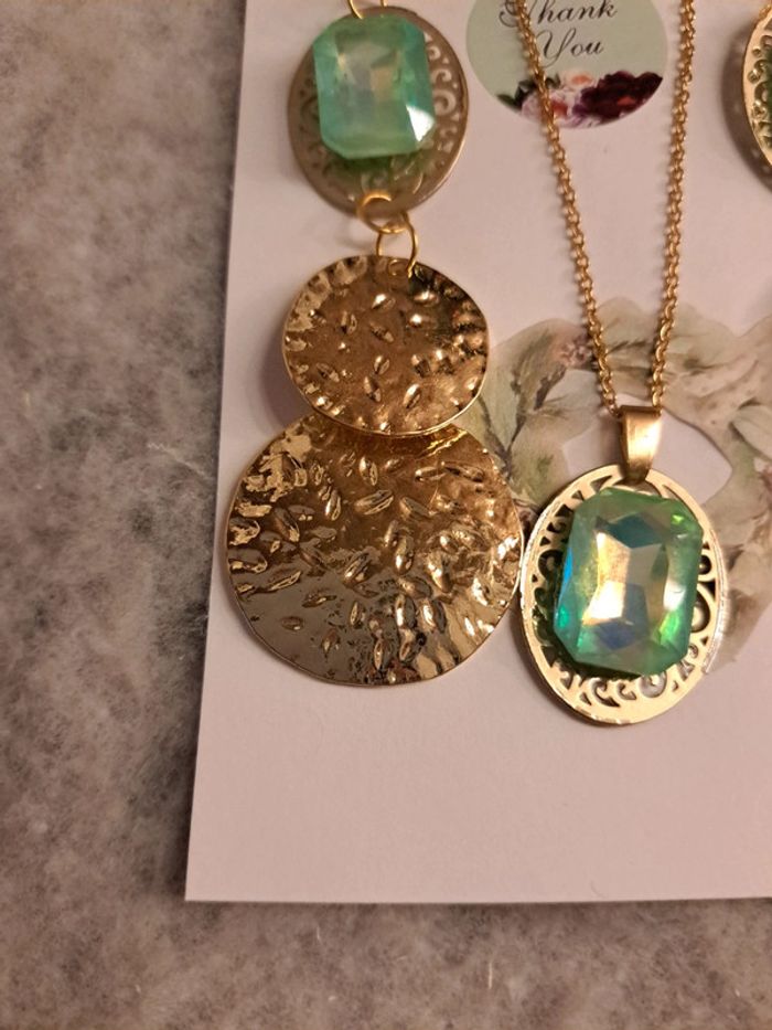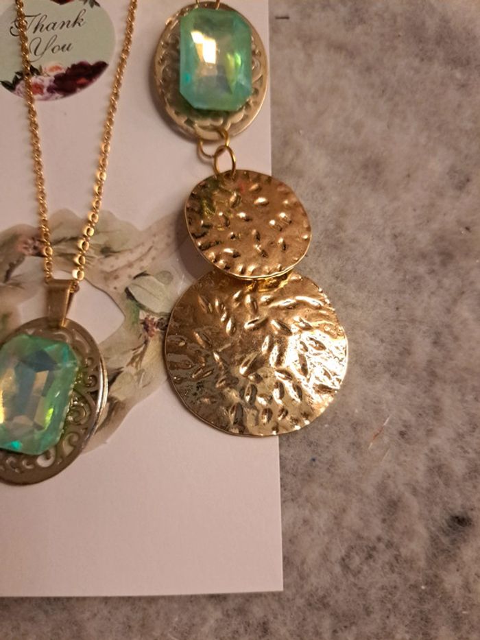 Boucles d'oreilles pendante avec collier assortie strass vert bleu - photo numéro 4