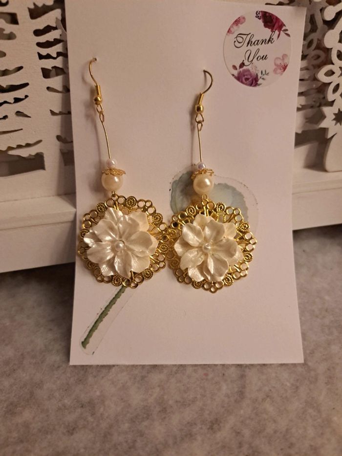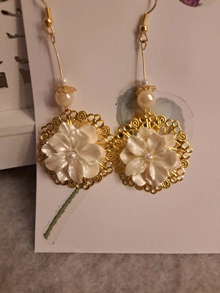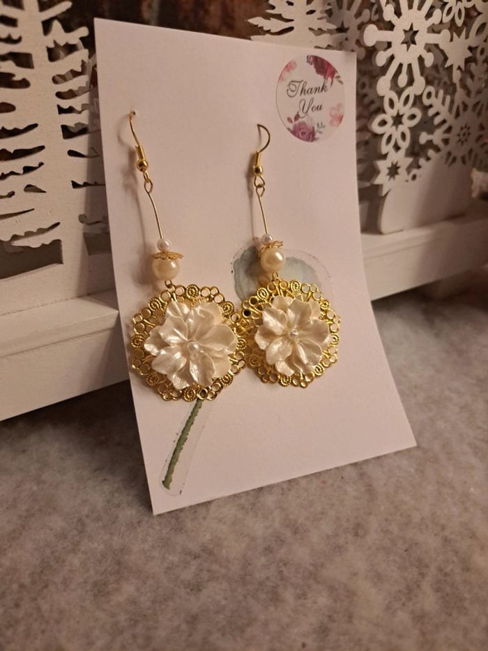 Boucles d'oreilles pendante chic doré et blanche - photo numéro 4