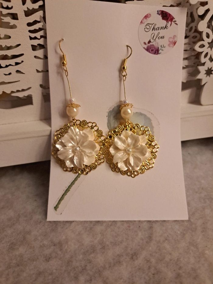 Boucles d'oreilles pendante chic doré et blanche - photo numéro 1