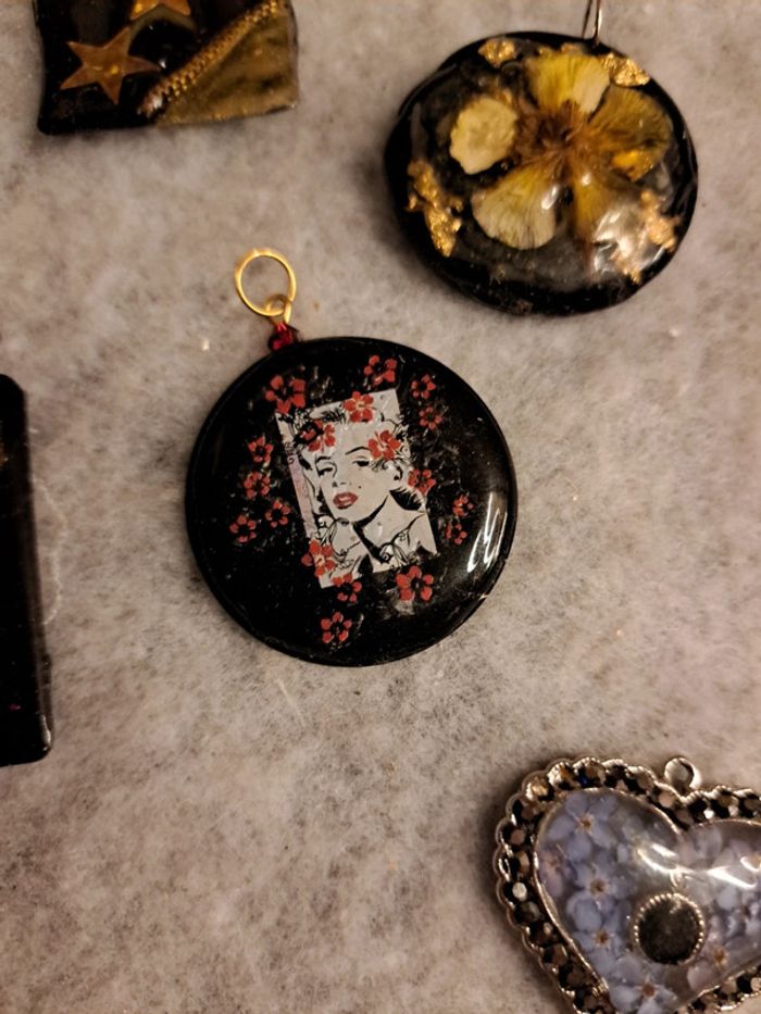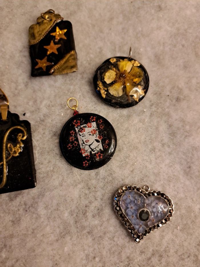 Lot de pendentifs en résine avec inclusion fleurs séché véritable stickers maryline Monroe étoile 🌟 papiers florale inscription love et un en aluminium Tous original toutes formes et styles