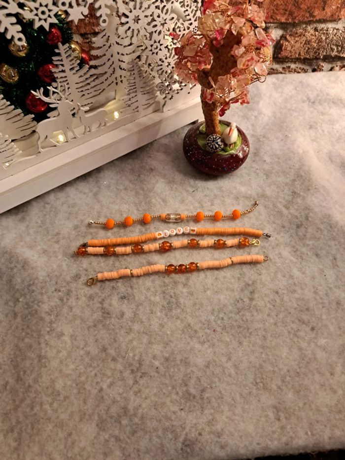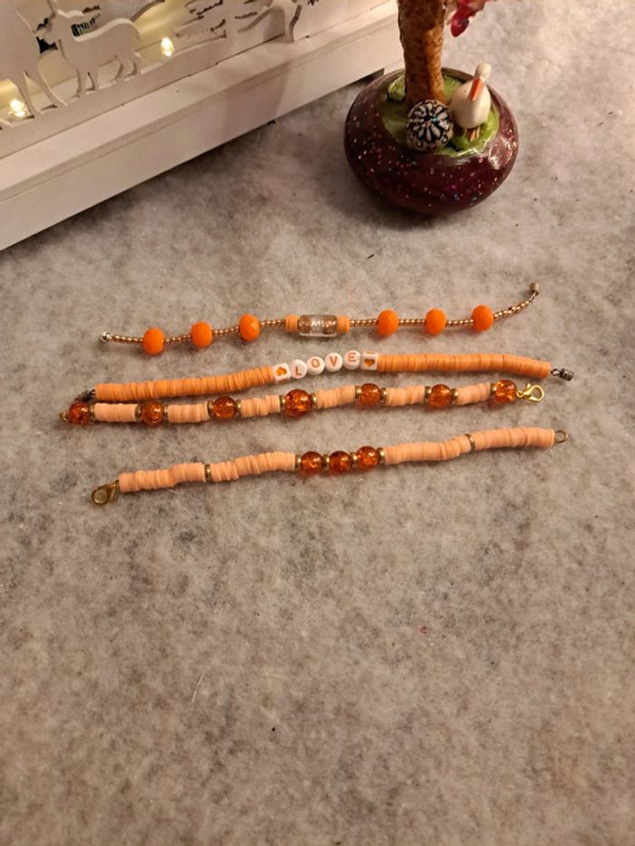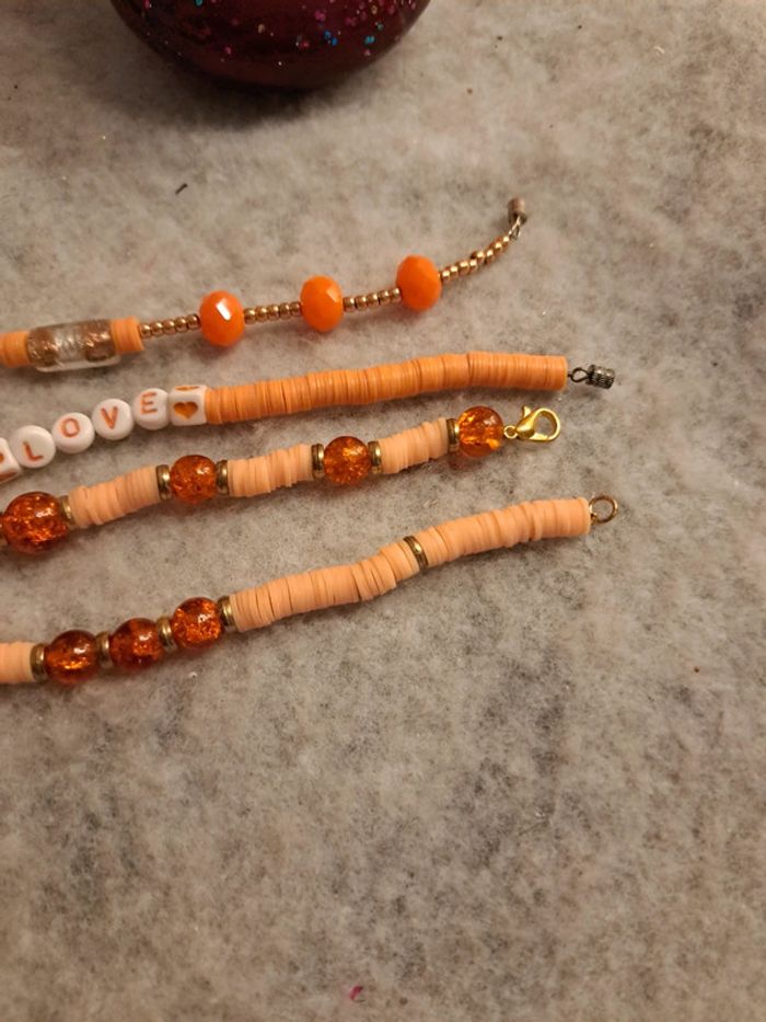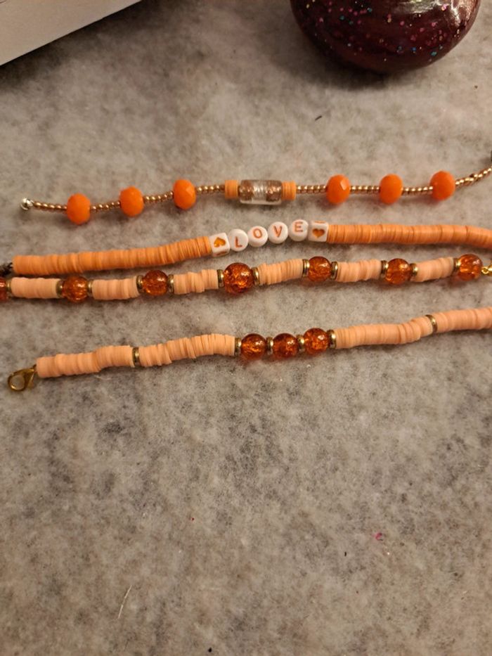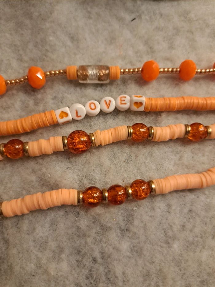 Lot de bracelets orange et doré heishie - photo numéro 4