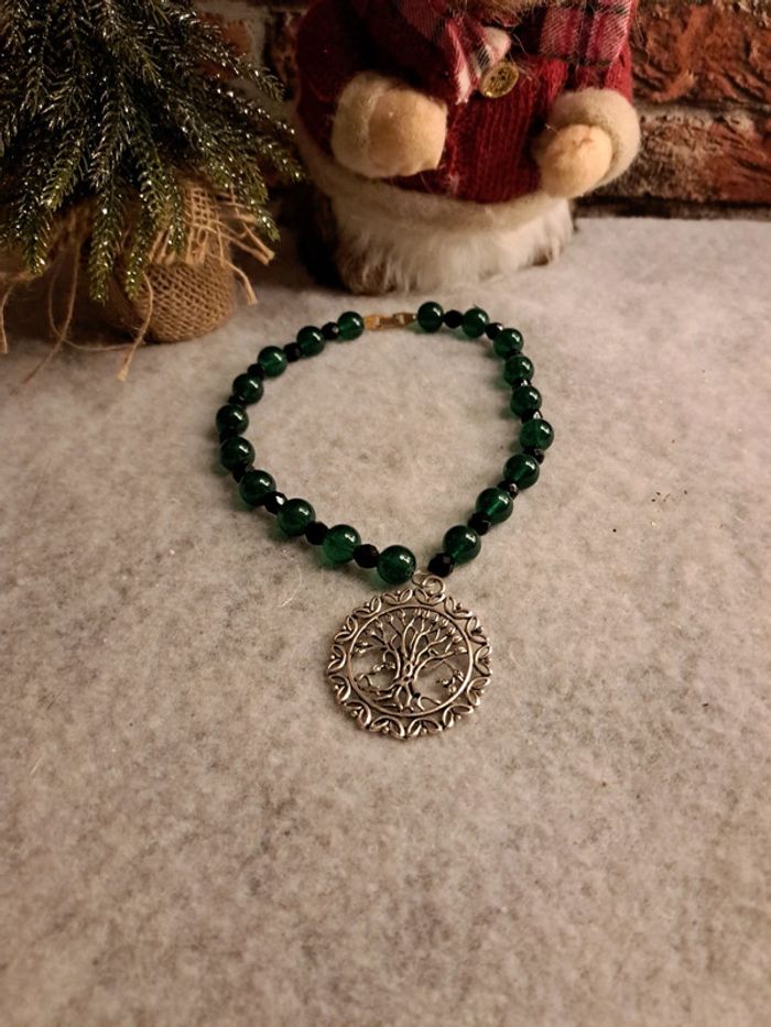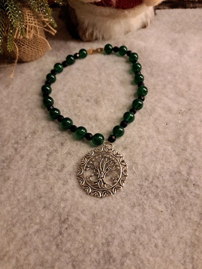 Collier ras de cou vert et noir avec pendentif arbre de vie - photo numéro 1