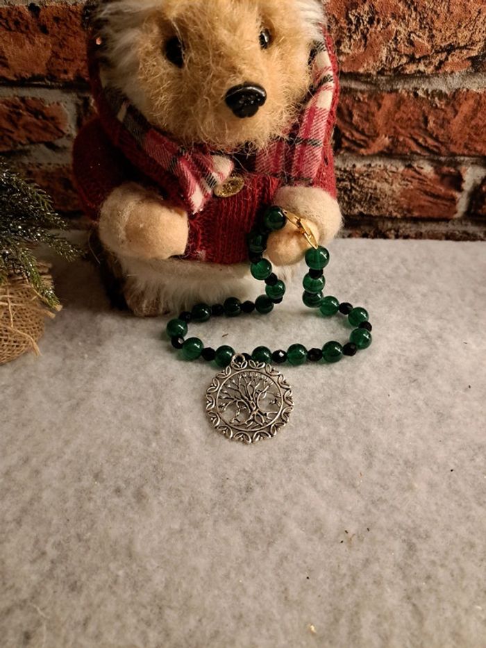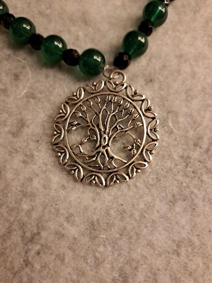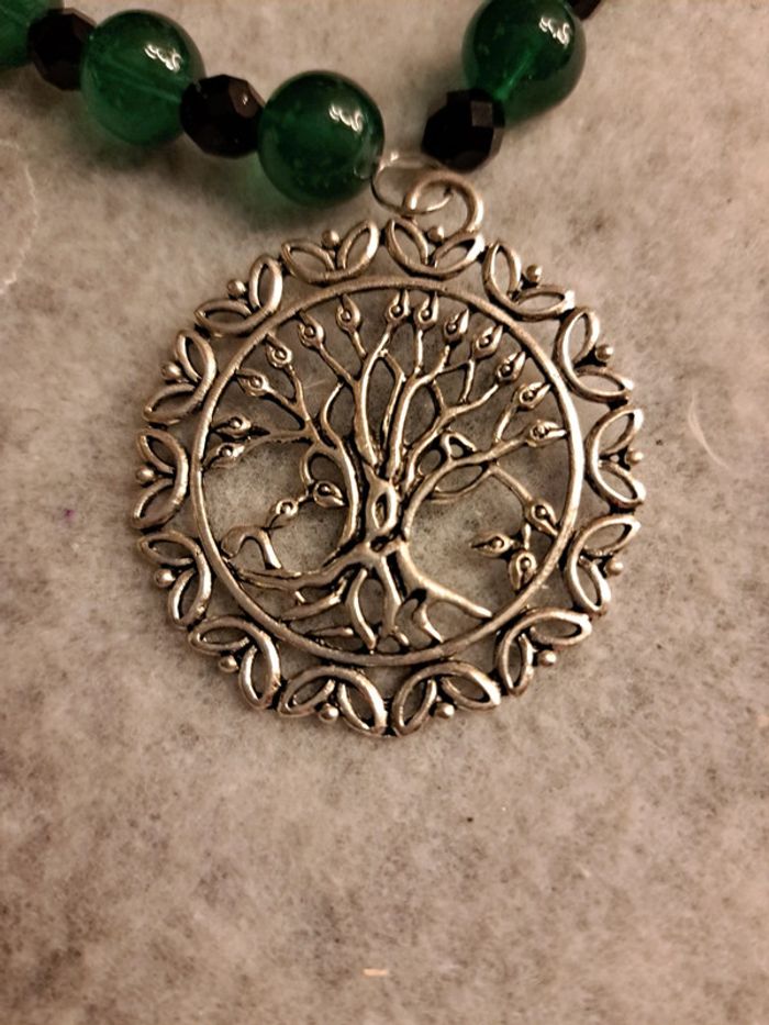 Collier ras de cou vert et noir avec pendentif arbre de vie - photo numéro 7
