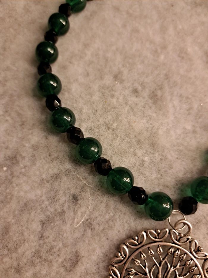 Collier ras de cou vert et noir avec pendentif arbre de vie - photo numéro 9
