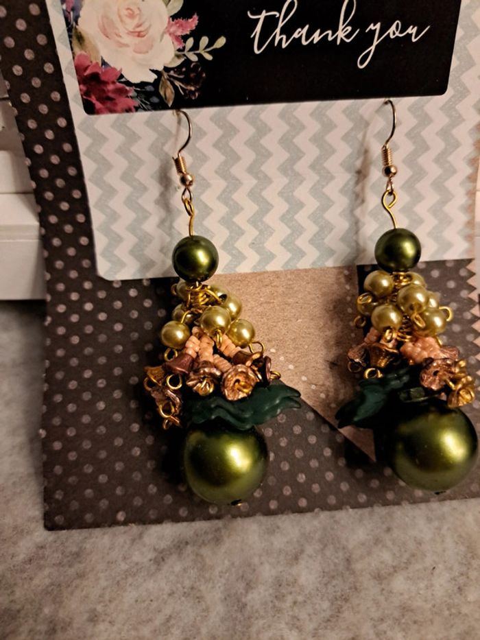 Magnifique paire de boucles d'oreilles pendantes verte et doré - photo numéro 1