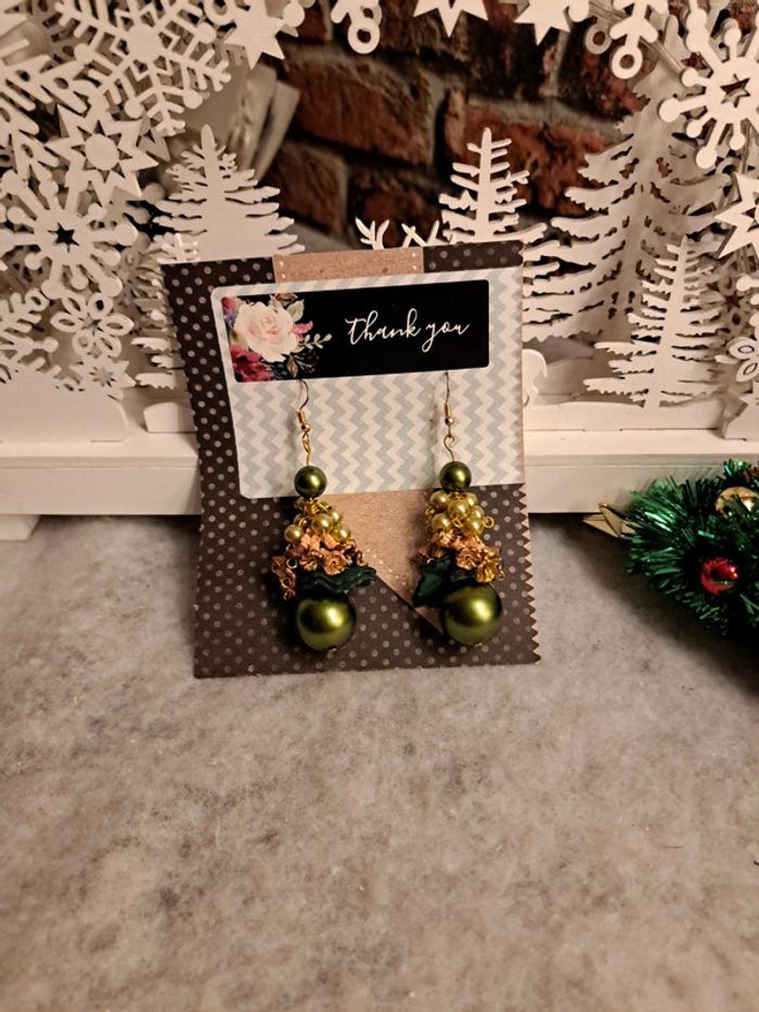 Magnifique paire de boucles d'oreilles pendantes verte et doré - photo numéro 4