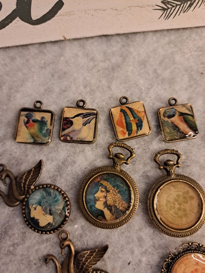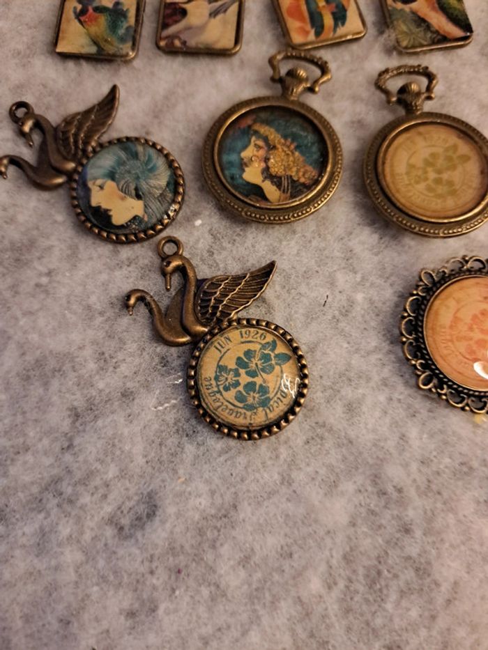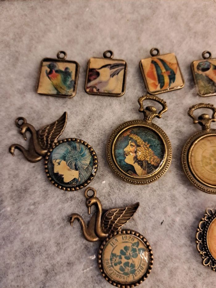 Lot de pendentifs bronze en résine multicolore - photo numéro 10