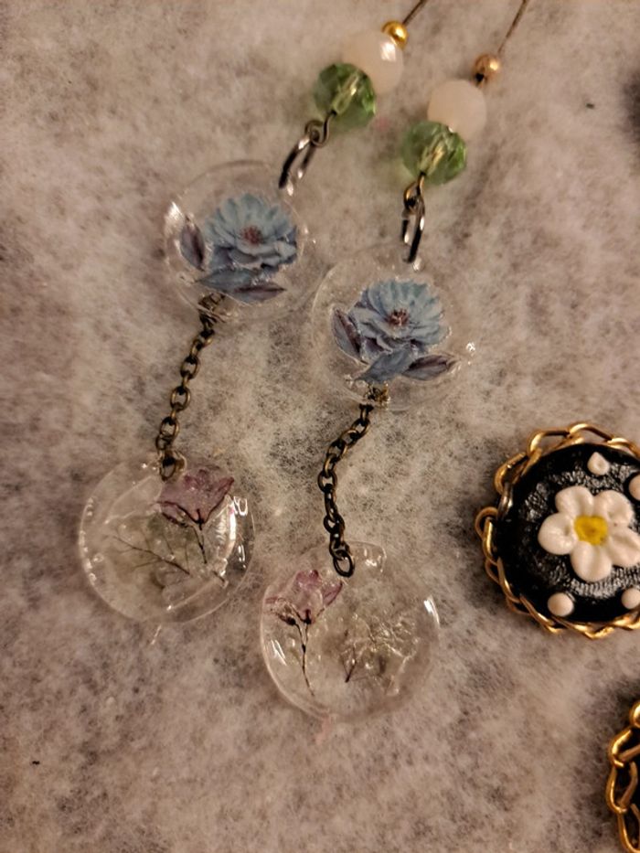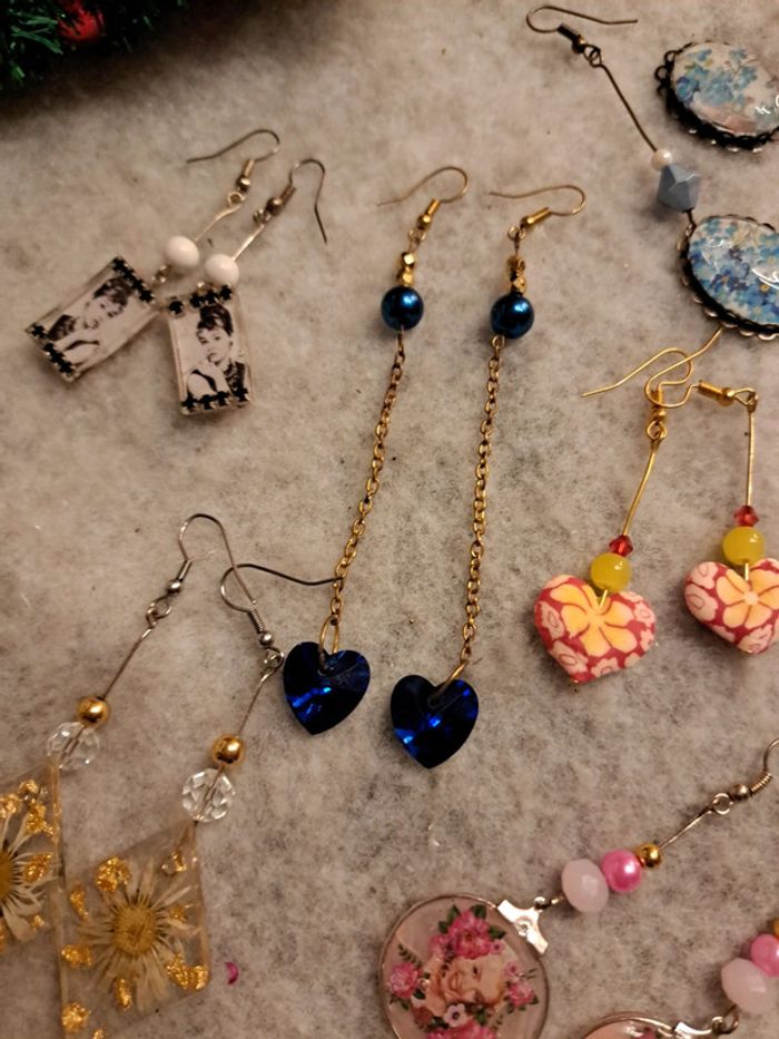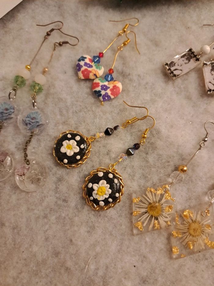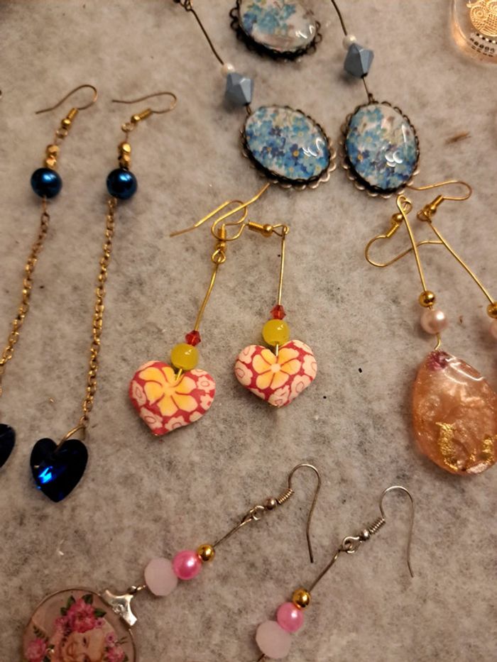 Lot de boucles d'oreilles pendante multicolore artisanale - photo numéro 10