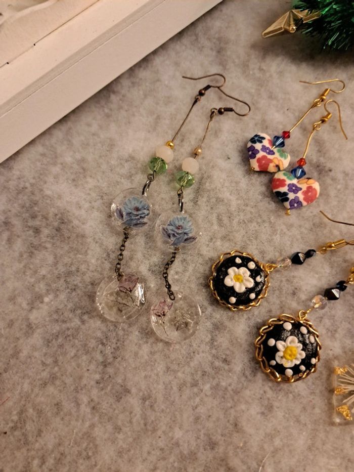Lot de boucles d'oreilles pendante multicolore artisanale - photo numéro 3