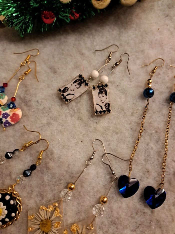 Lot de boucles d'oreilles pendante multicolore artisanale - photo numéro 11