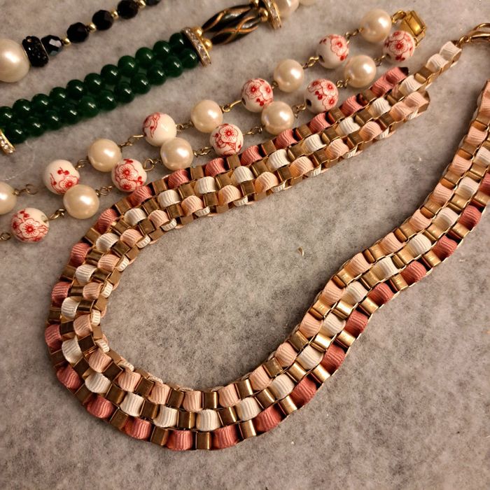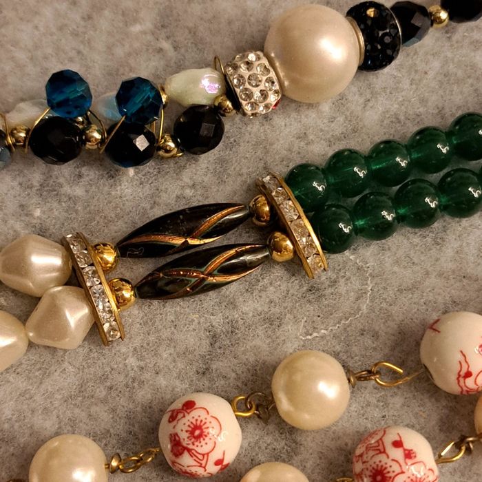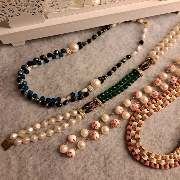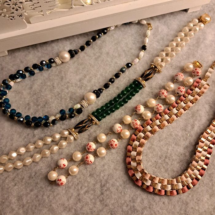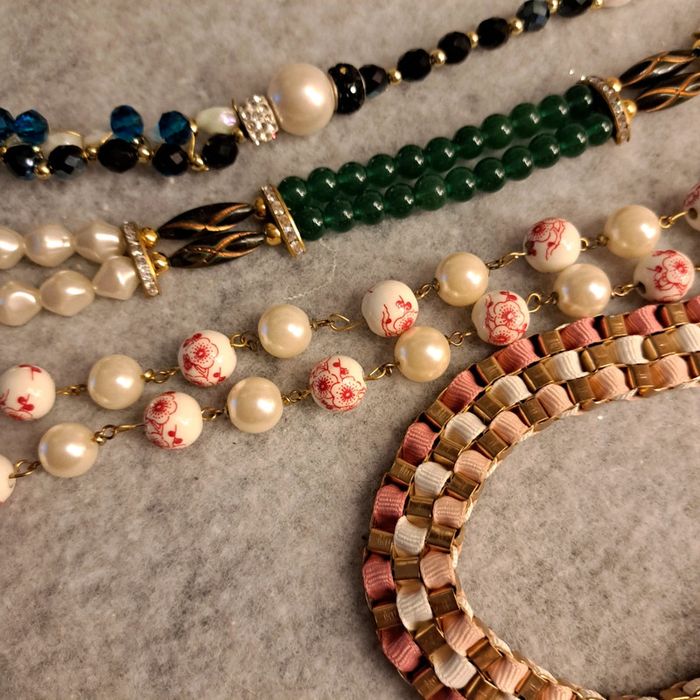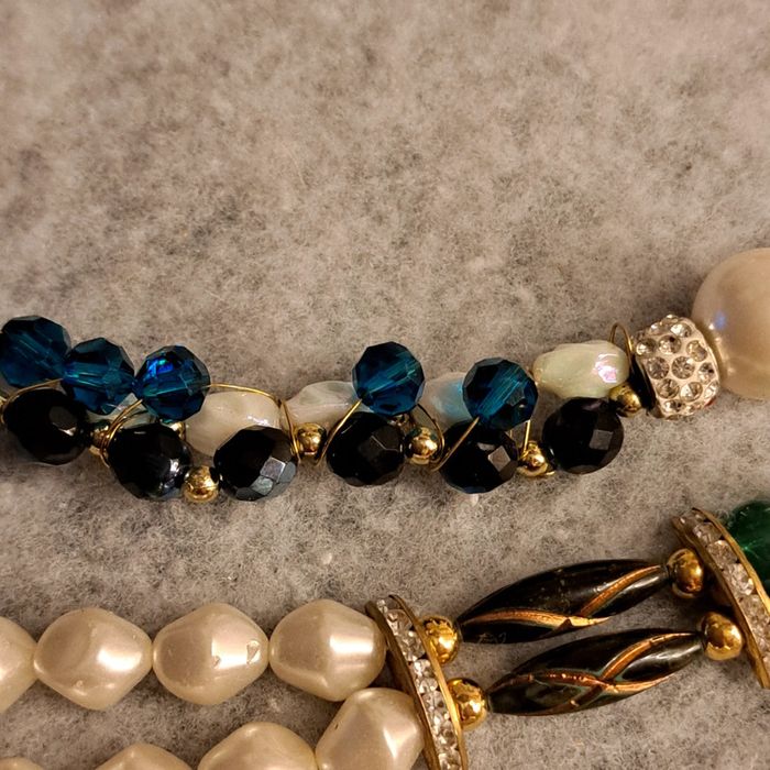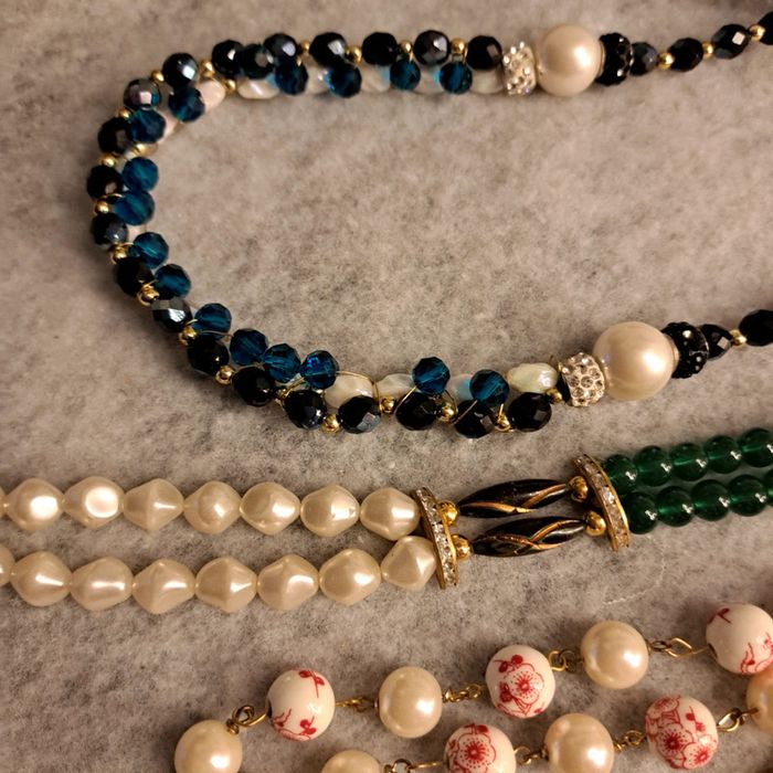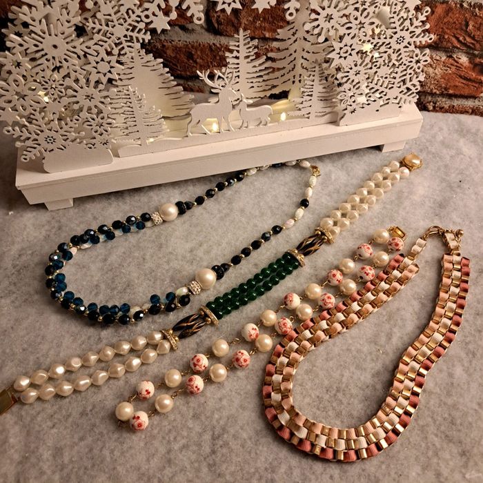 Lot de bijoux multicolore Chic élégant Comprenant 4 magnifiques colliers Bleu noir blanc vert beige doré A ne pas passé à côté de ces magnifiques colliers