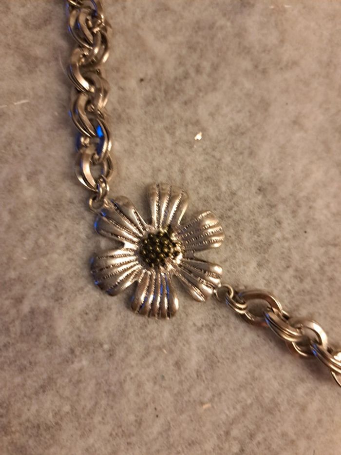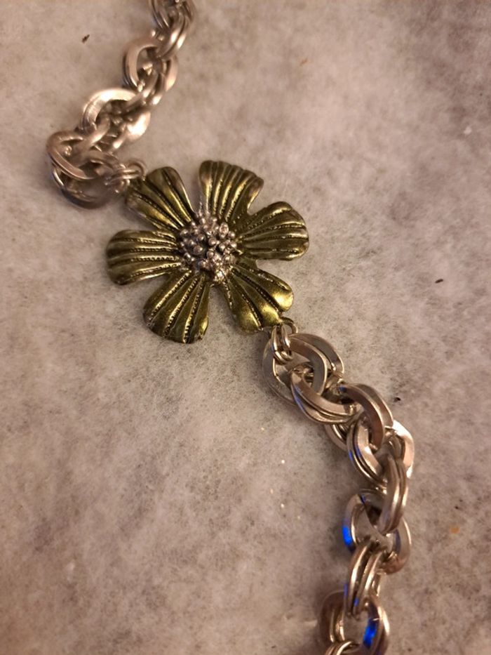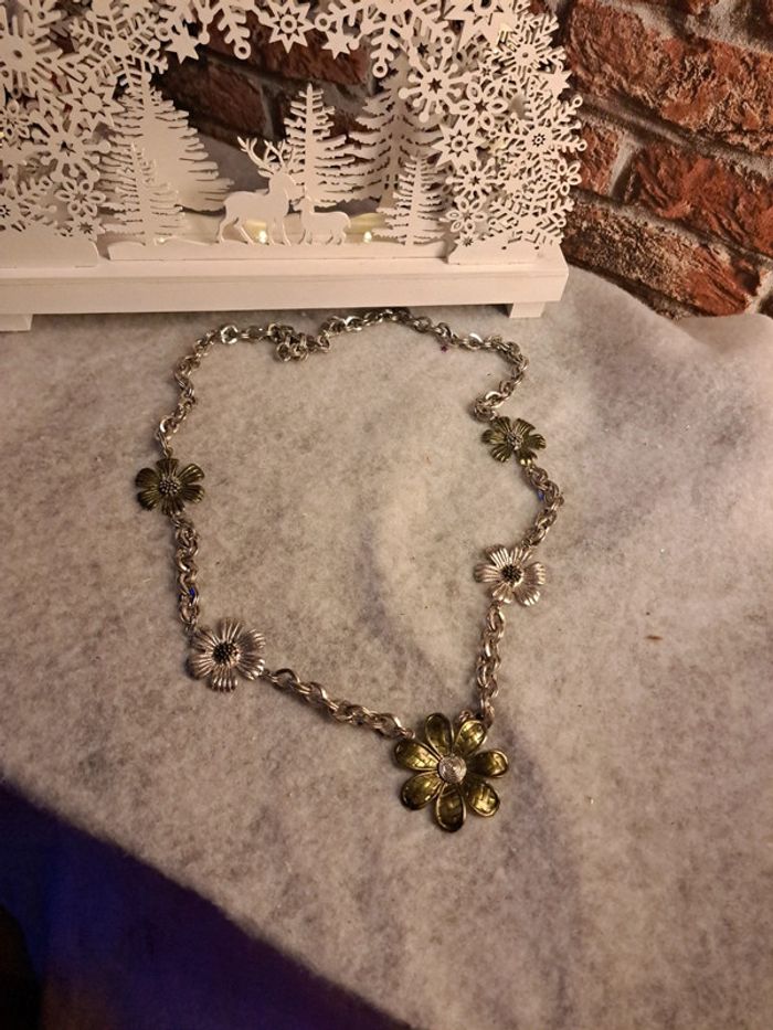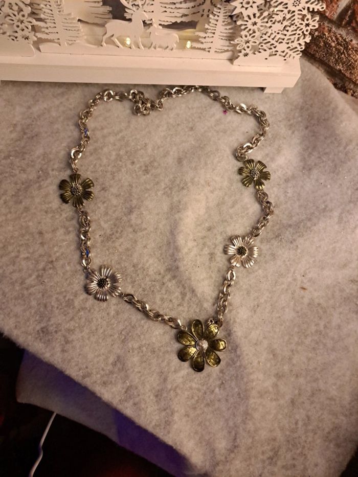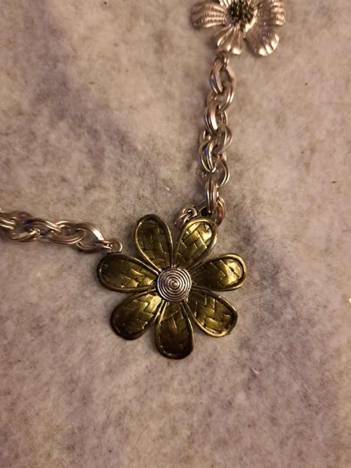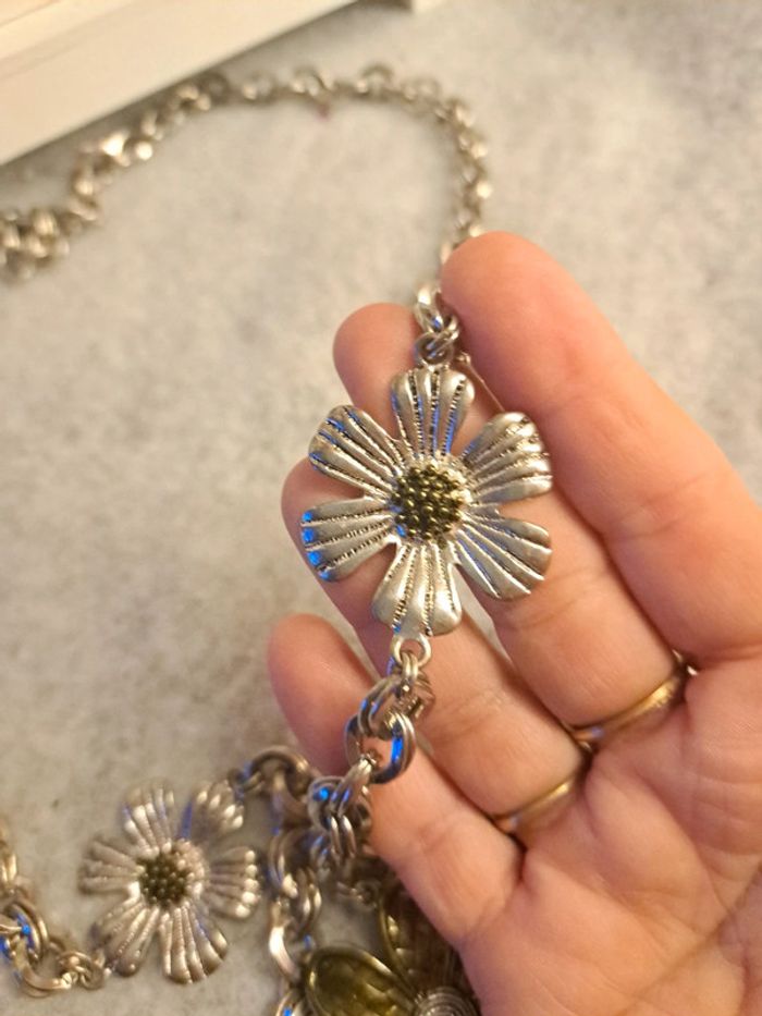 Collier sautoir acier inoxydable fleurs argenté et vert kakie Jolie
