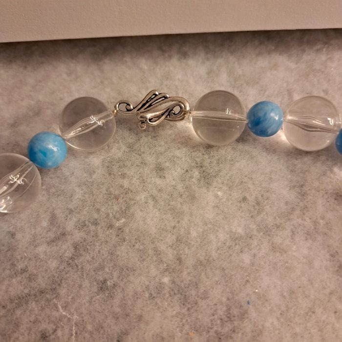 Collier ras de cou perles bleu ciel et perles ronde transparente Chic et élégant