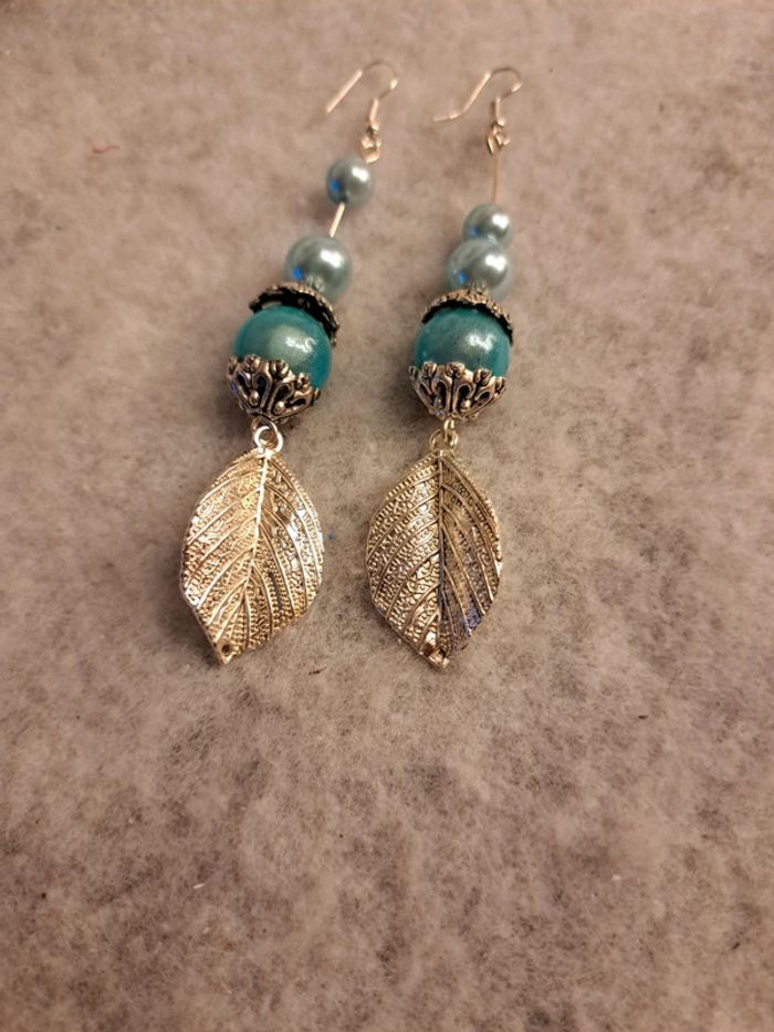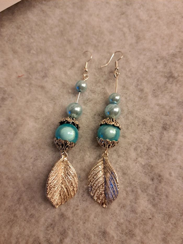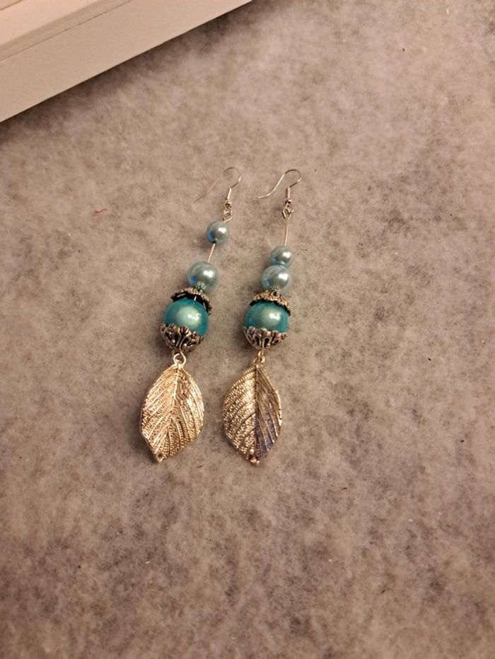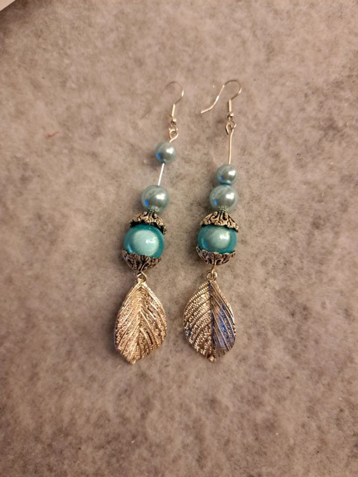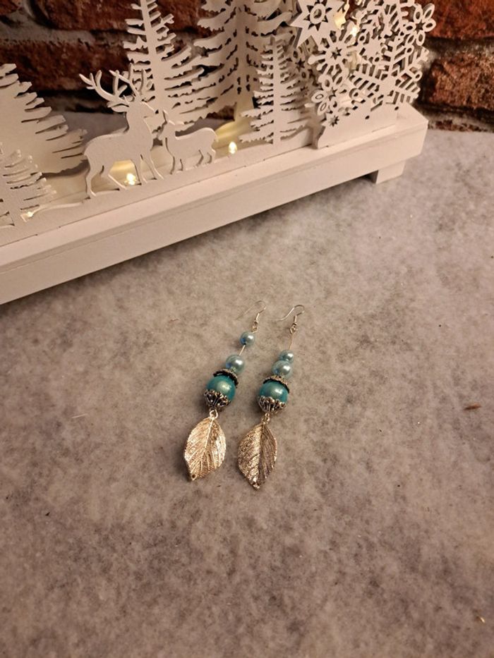 Boucles d'oreilles pendante feuilles argenté et bleu - photo numéro 1