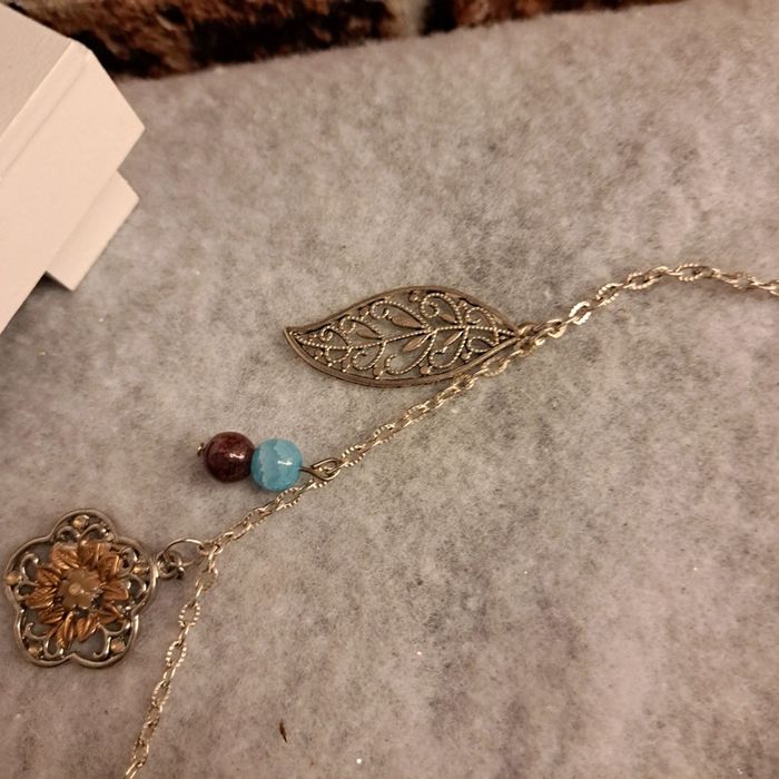Collier argenté acier inoxydable avec cascades de chaînette et petites perles multicolore breloques acier inoxydable Artisanale et unique