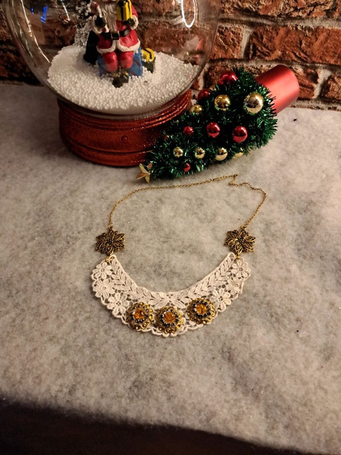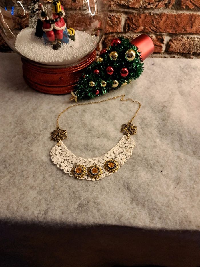 Collier avec plastron dentelle blanche et strass - photo numéro 1