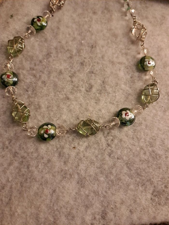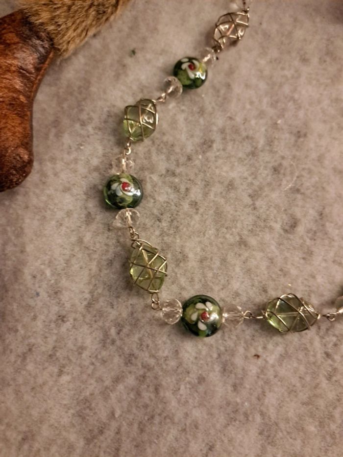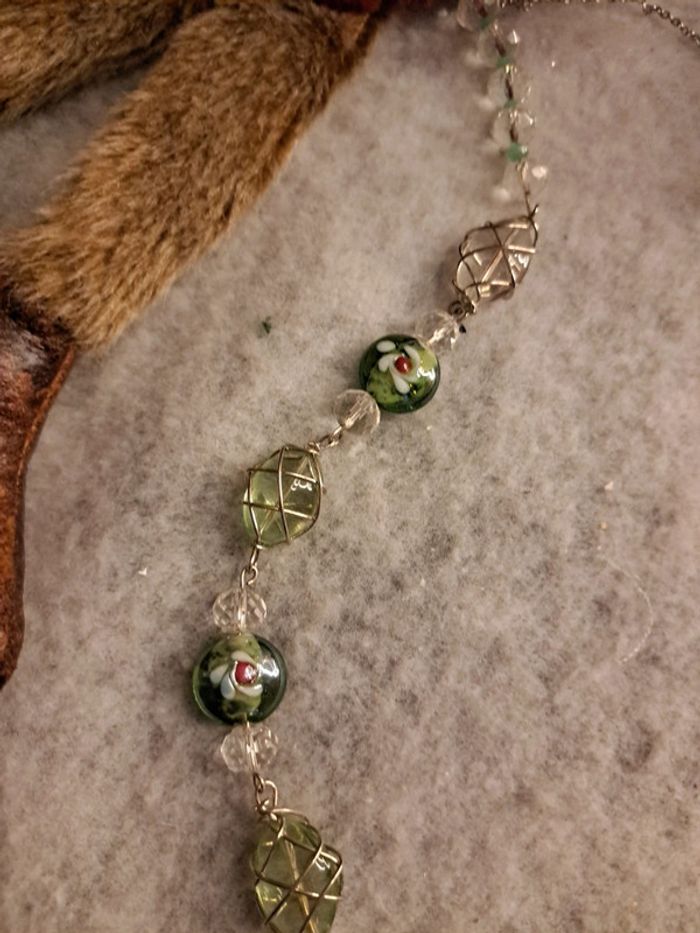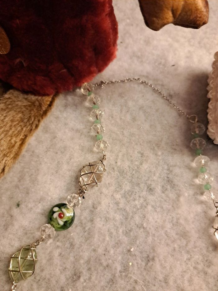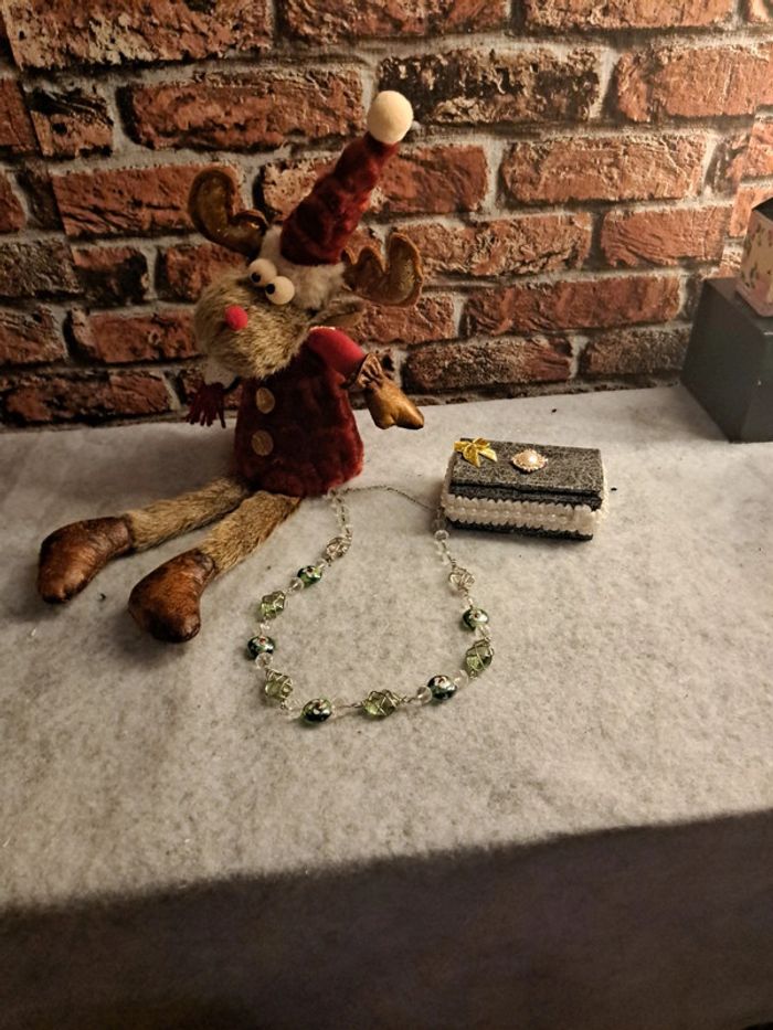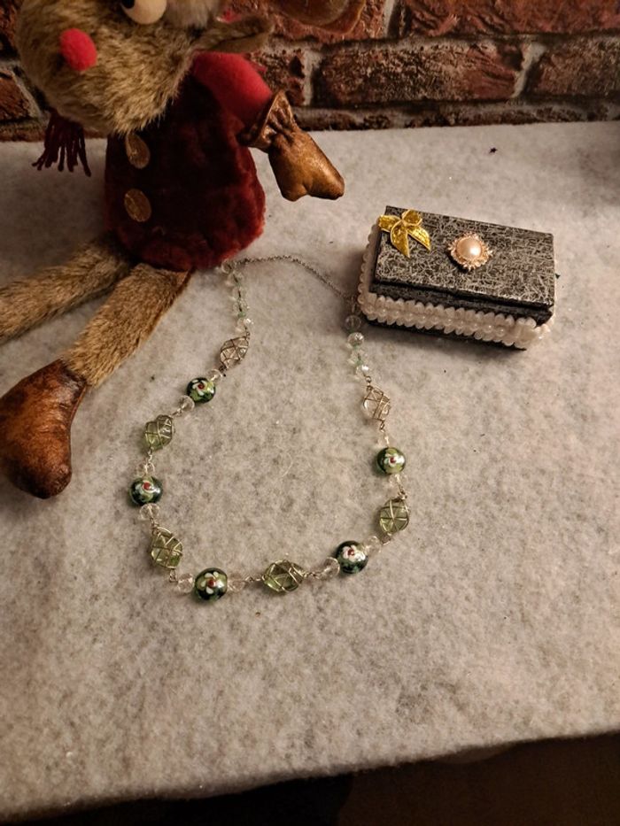 Jolie collier vert et argenté il est superbe les perles aussi Unique puisque issus de ma création Collier avec sa boîte prêt à offrir pour Noël 🎅