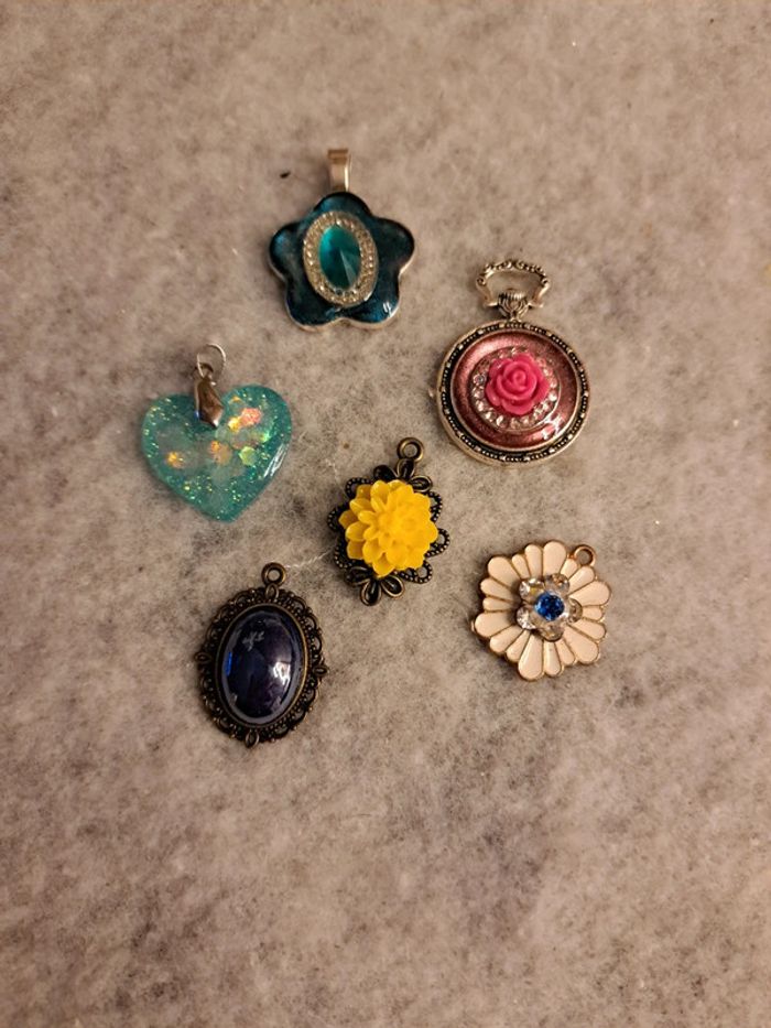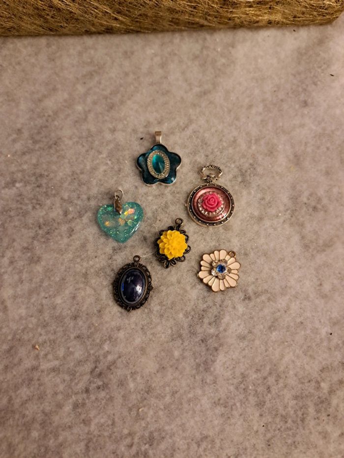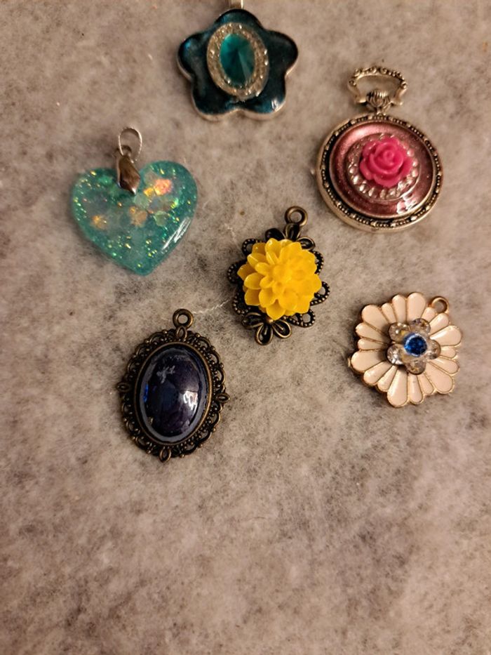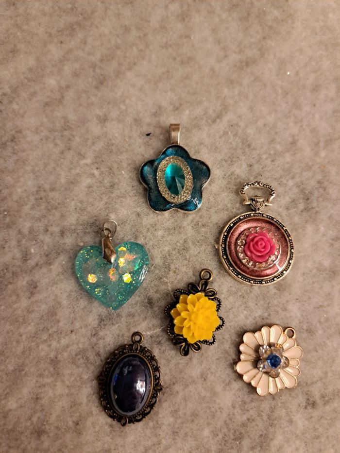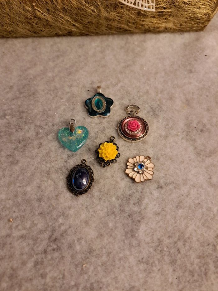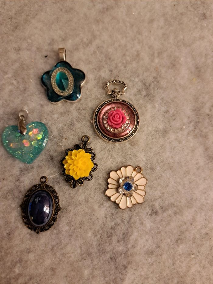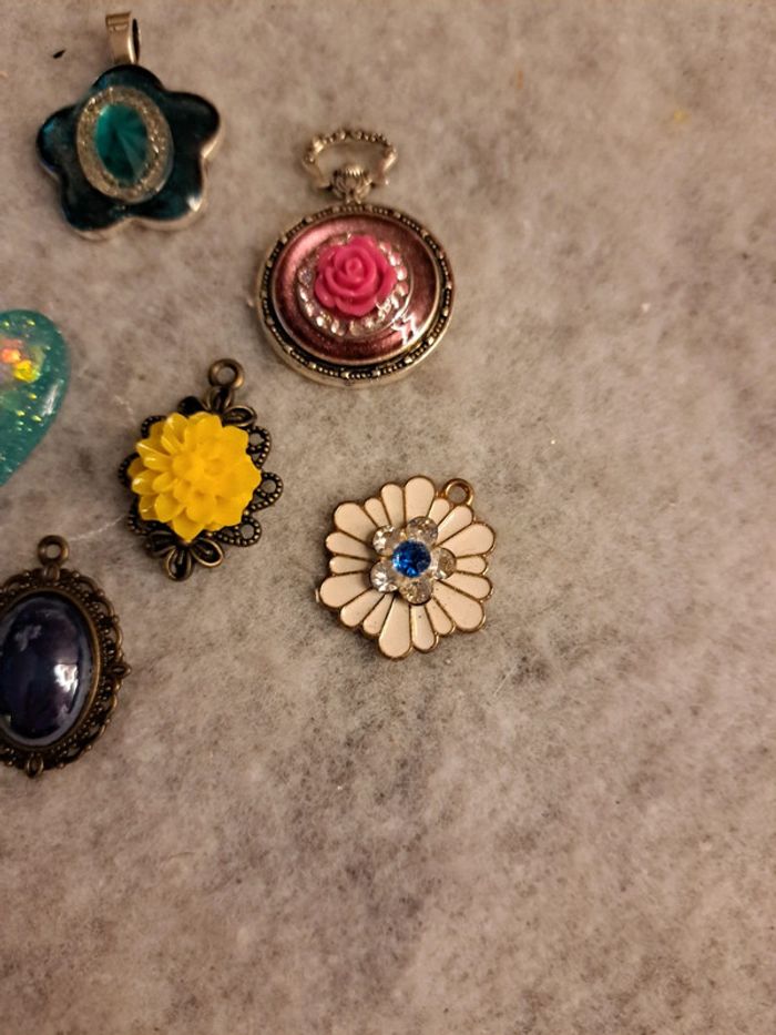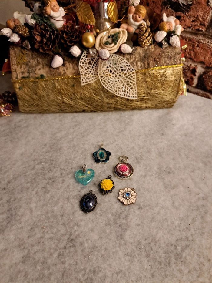 Petit lot de pendentif multicolore en résine et autres Acier inoxydable Pour réaliser de magnifiques créations tels Que colliers bracelet etc...