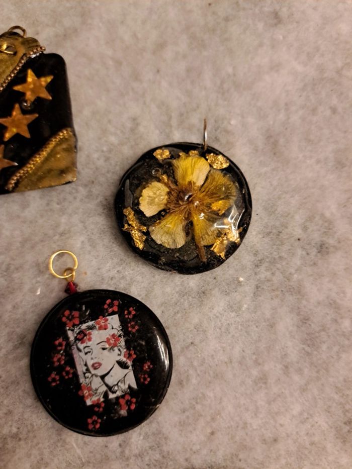 Lot de pendentifs en résine avec inclusion fleurs séché véritable stickers maryline Monroe étoile 🌟 papiers florale inscription love et un en aluminium Tous original toutes formes et styles