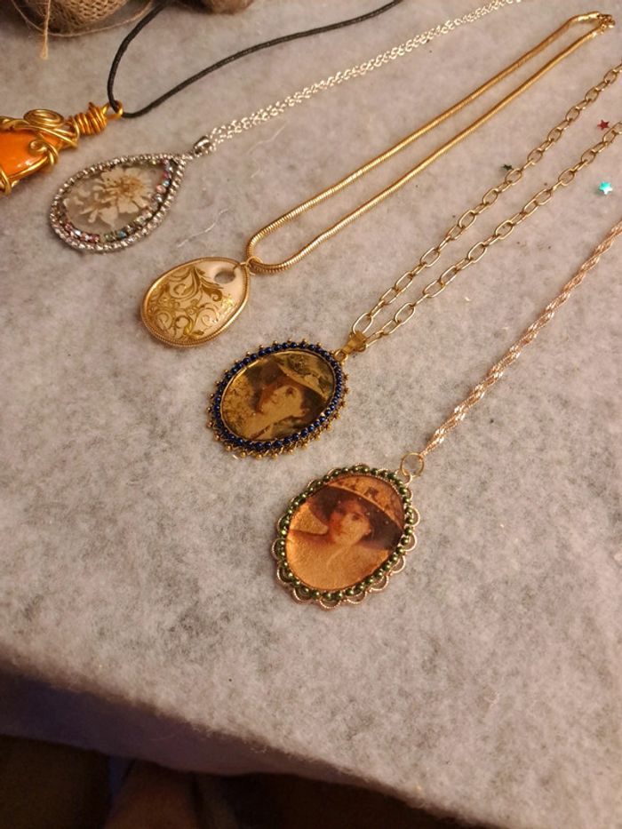 Lot de 5 colliers doré argenté et noir avec magnifique pendentif 4 en résine et un aluminium tous très jolie sans exception
