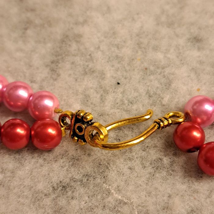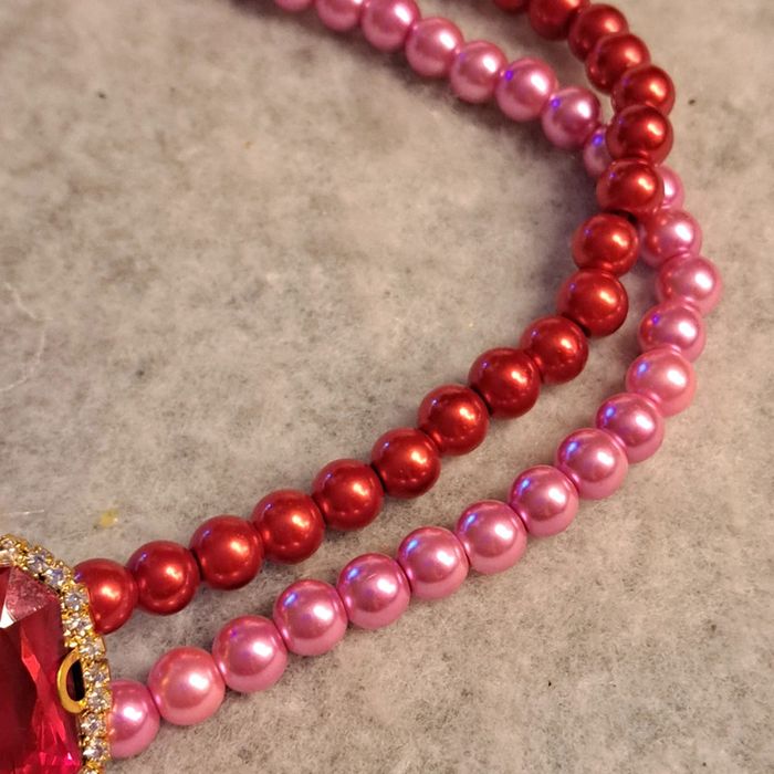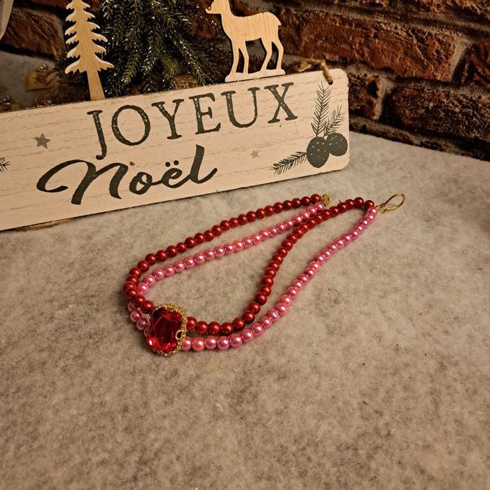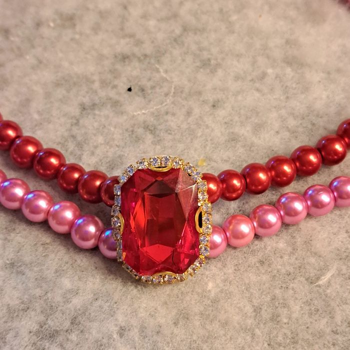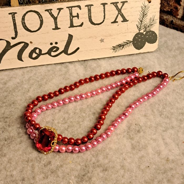 Jolie collier ras de cou couleur rose et rouge perles en verre nacré avec strass rouge Bohème