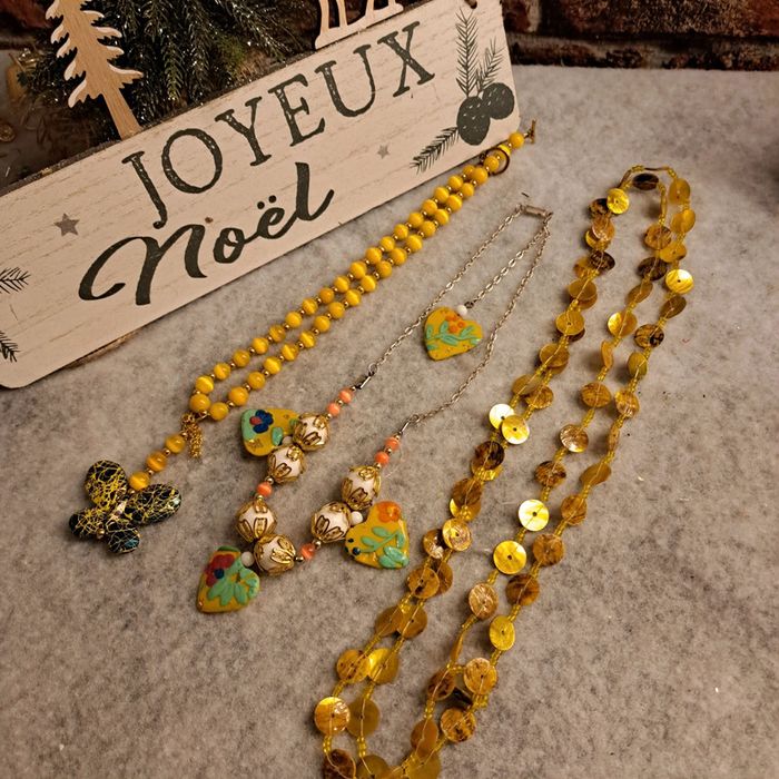Lots de colliers jaunes doré multicolore - photo numéro 3