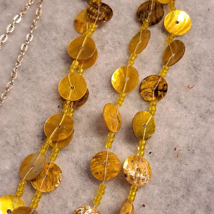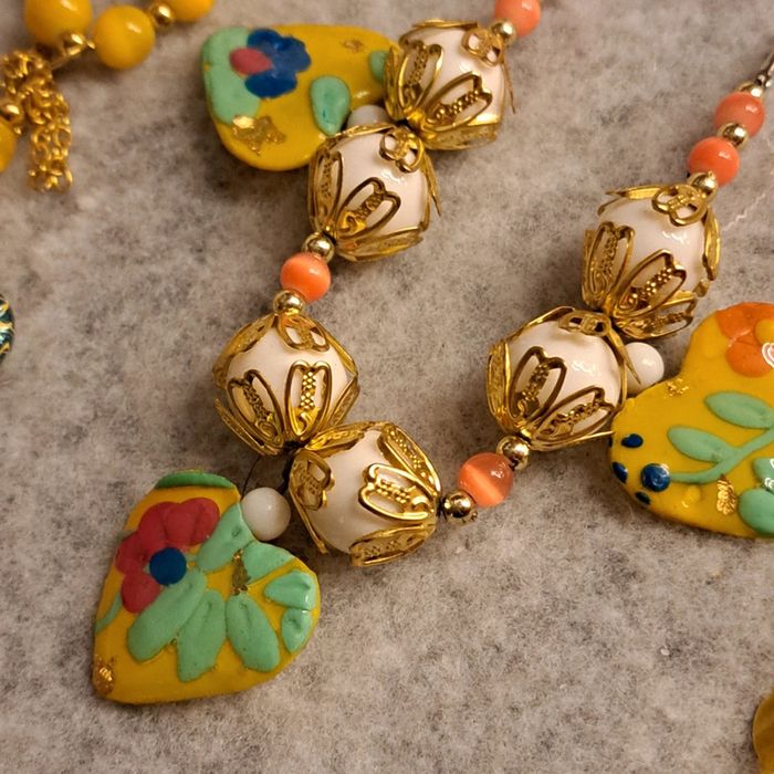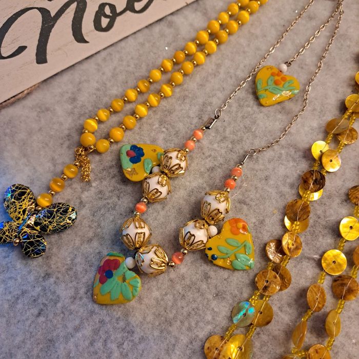 Très jolie colliers 3 dominance couleur jaune et doré puis multicolore 2 artisanale et 1 vintage Très jolie mariage de couleurs