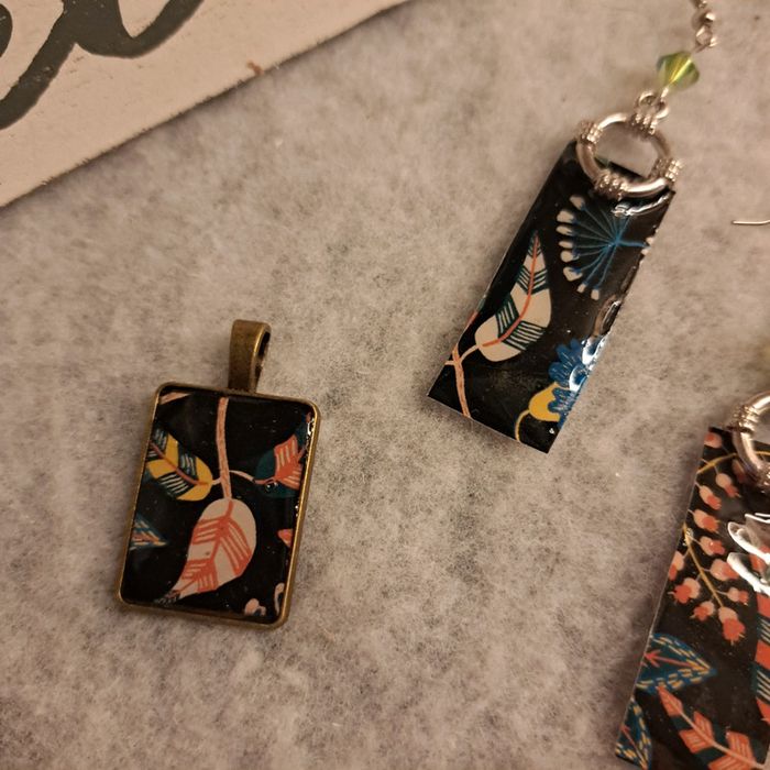 Boucles d'oreilles pendante et pendentif assortie en résine florale - photo numéro 9