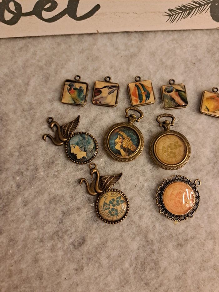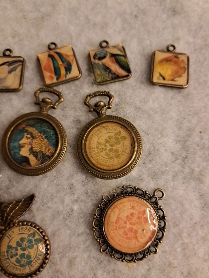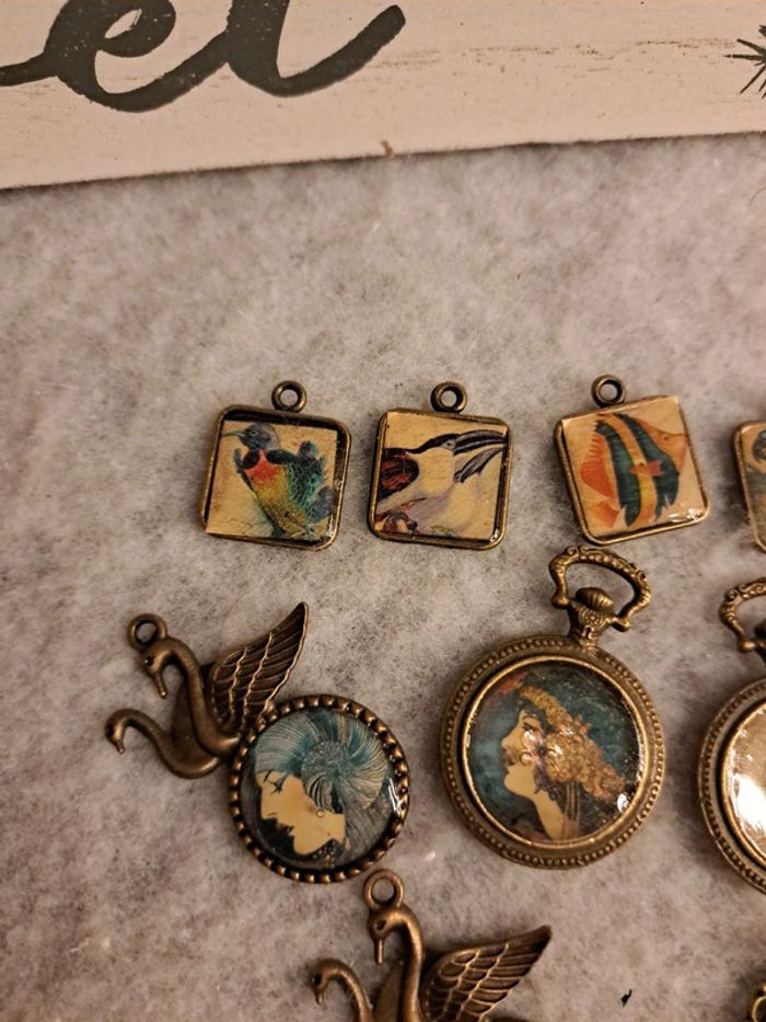 Lot de pendentifs bronze en résine multicolore - photo numéro 9