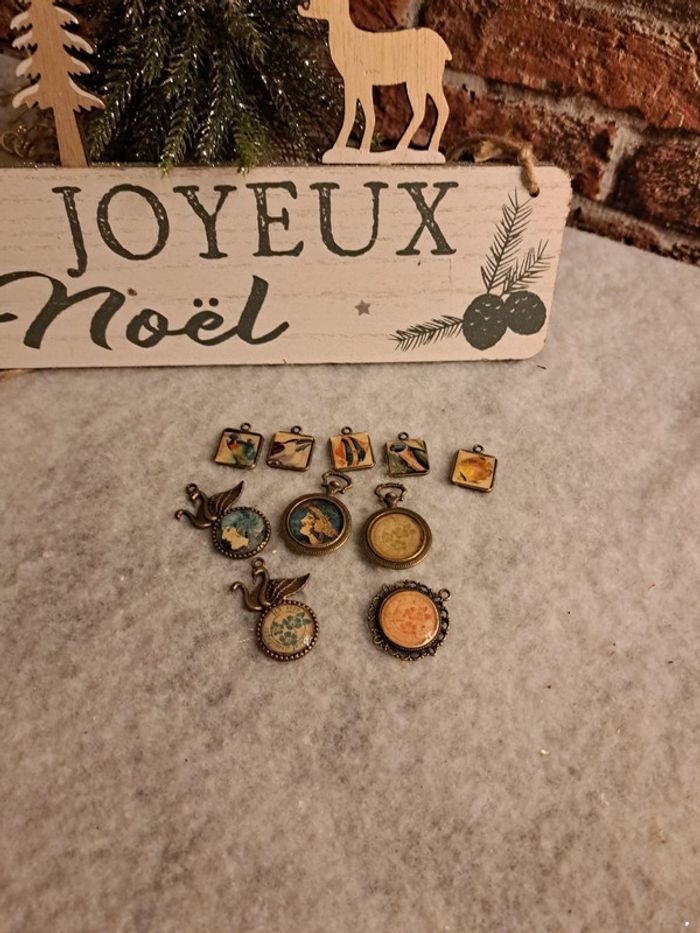 Lot de pendentifs bronze en résine multicolore - photo numéro 1