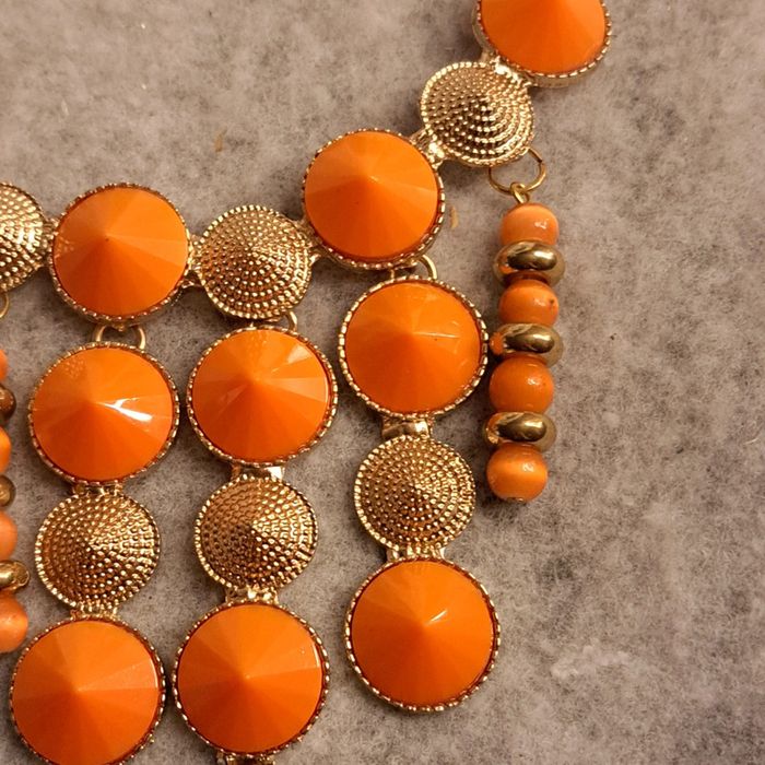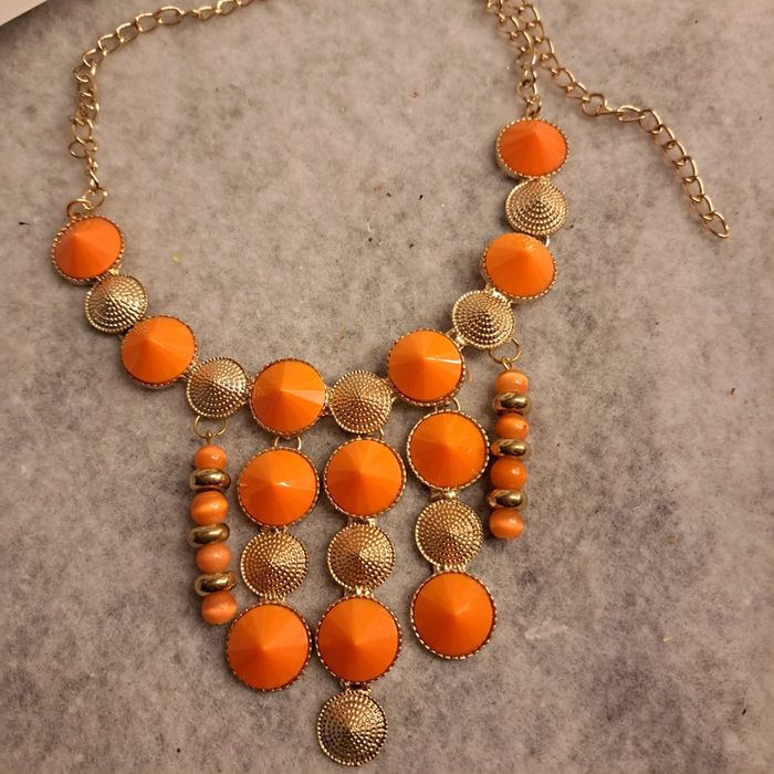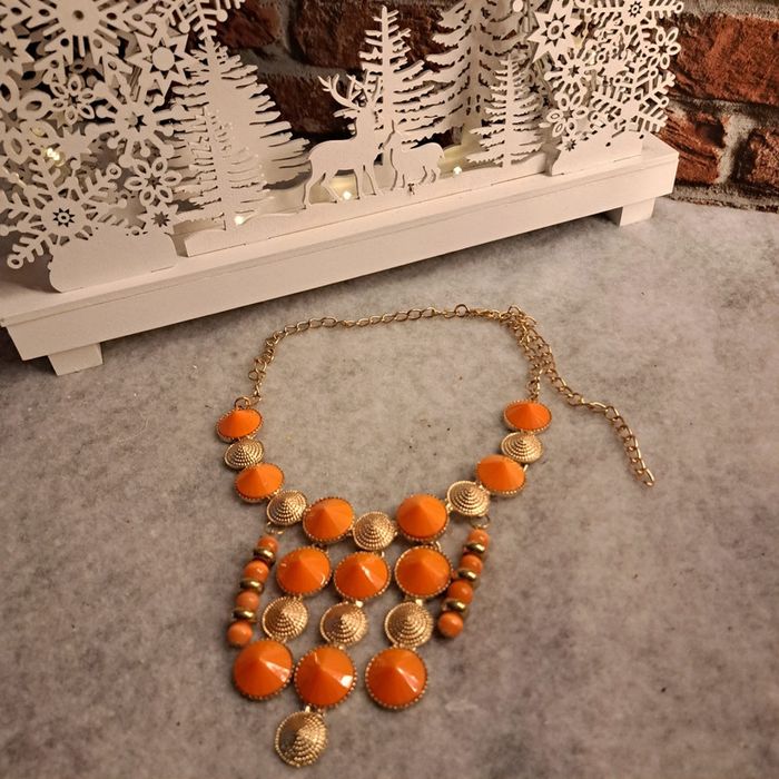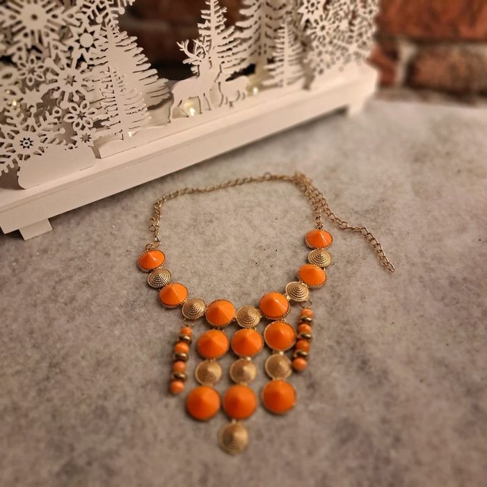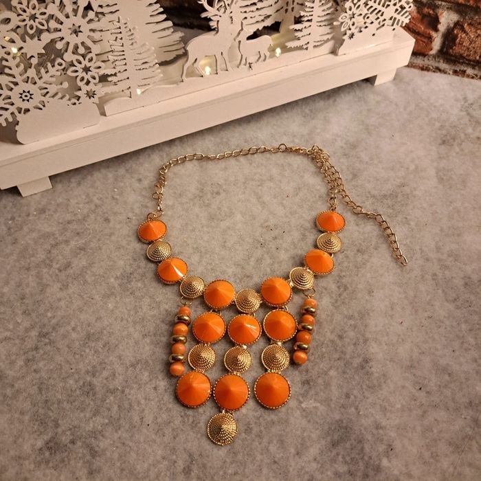 Collier ras de cou orange et doré Magnifique original A offrir pour Noël 🎅