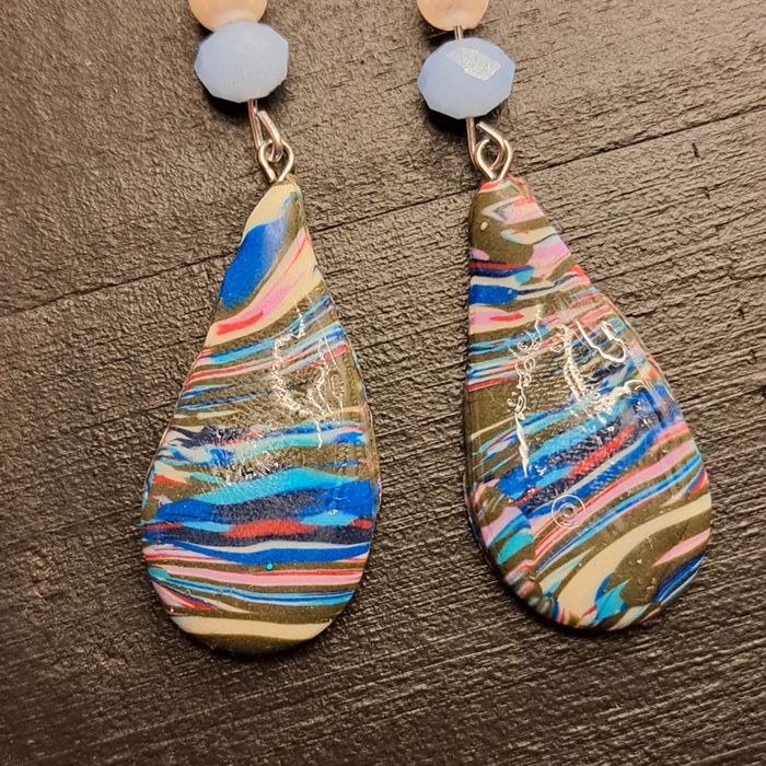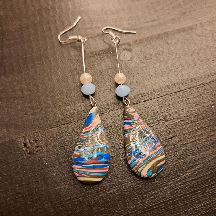 Boucles d'oreilles pendante en pâte polymere multicolore - photo numéro 1