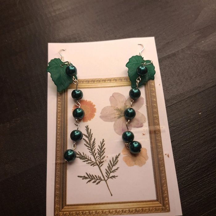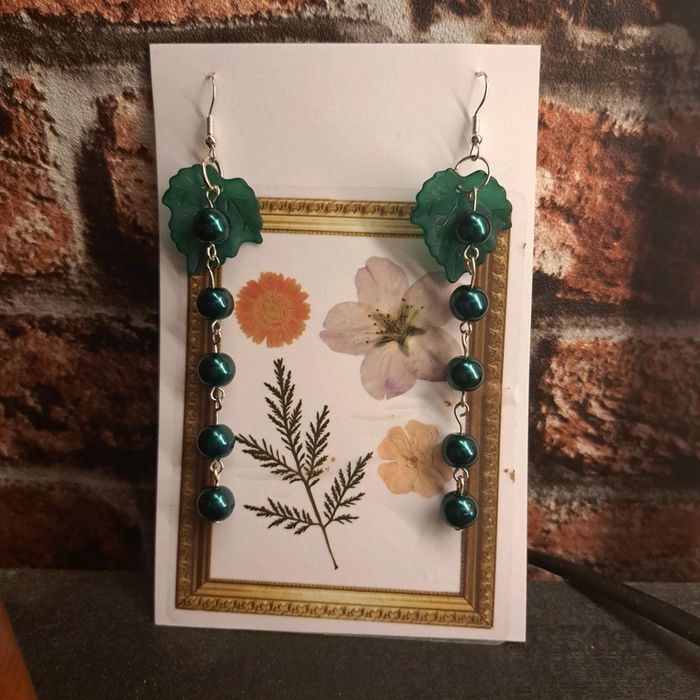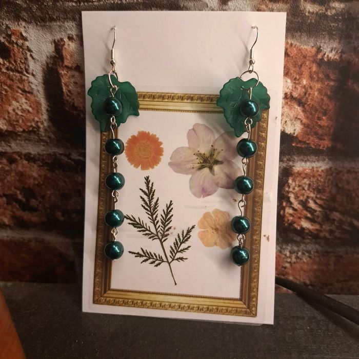 Boucles d'oreilles pendante avec perles vertes - photo numéro 10