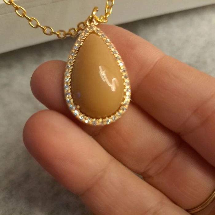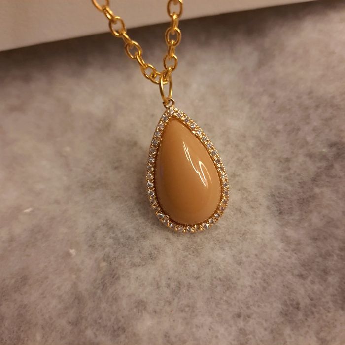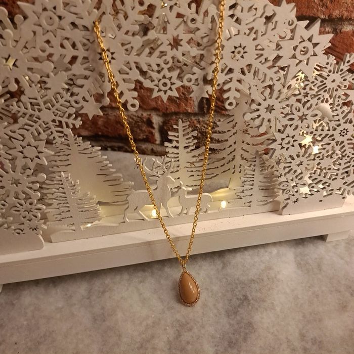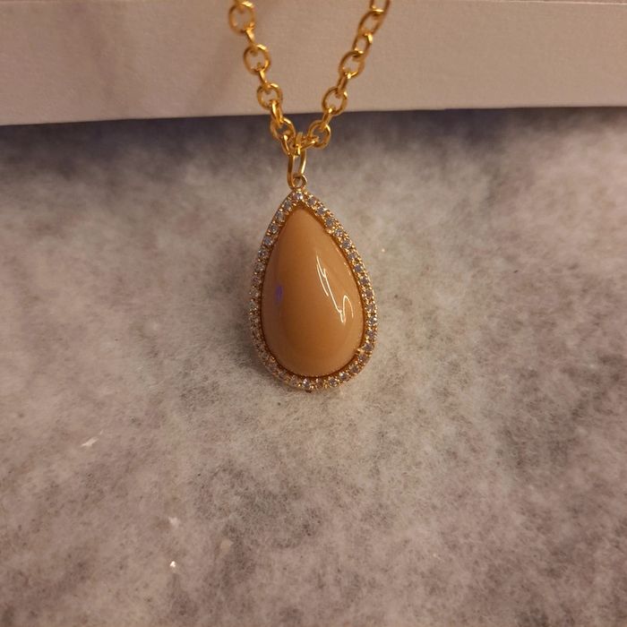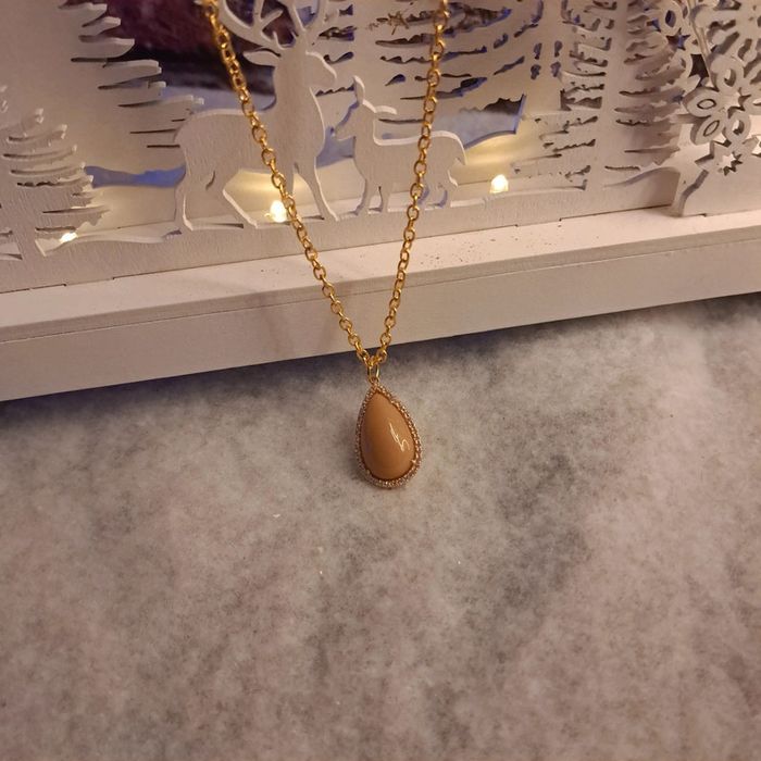 Jolie collier chaîne doré avec un magnifiques pendentif forme gouttes marron très clair orangé avec multiples strass D'une élégance et d'un chic incroyable