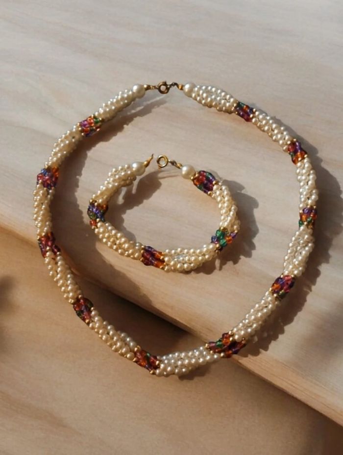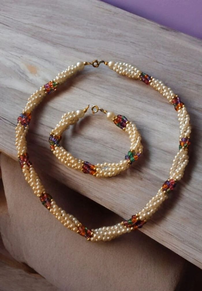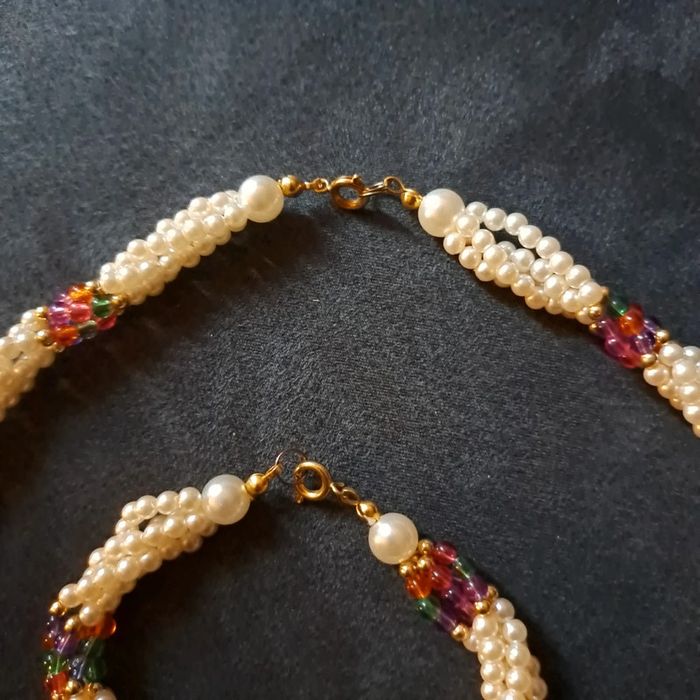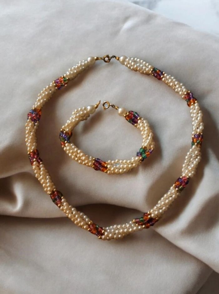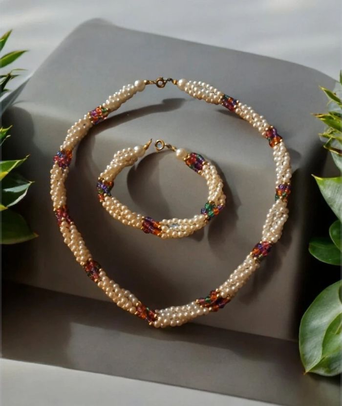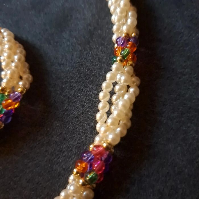 Belle ensemble pour ce magnifique collier ras de cou torsadé avec petite perles blanches nacré et perles petite multicolore avec bracelet assortie Style princesse