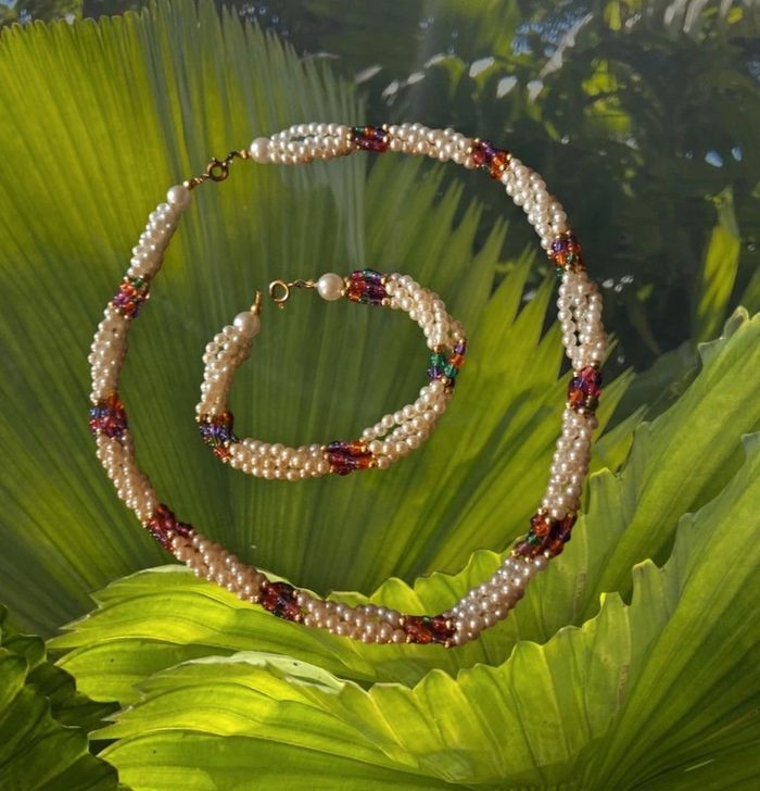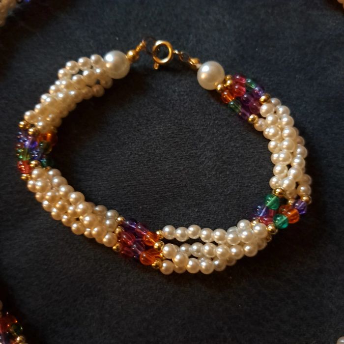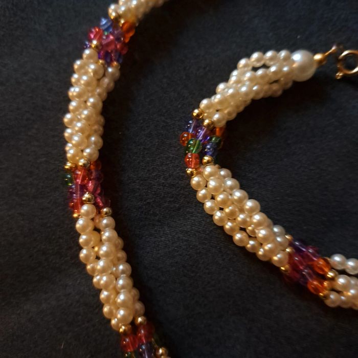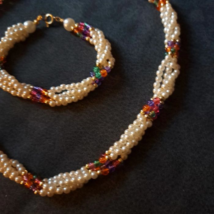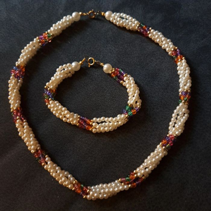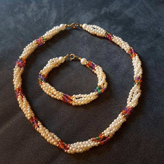 Belle ensemble pour ce magnifique collier ras de cou torsadé avec petite perles blanches nacré et perles petite multicolore avec bracelet assortie Style princesse