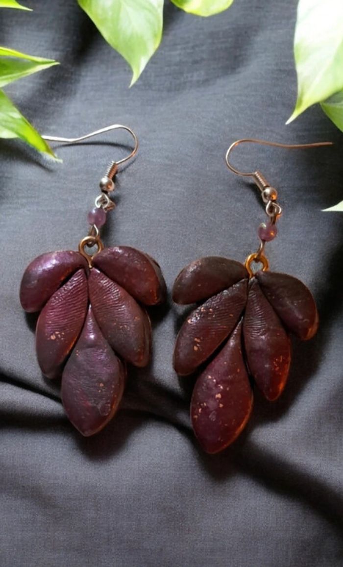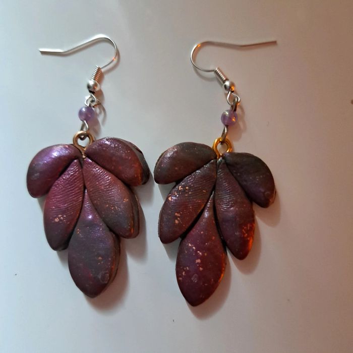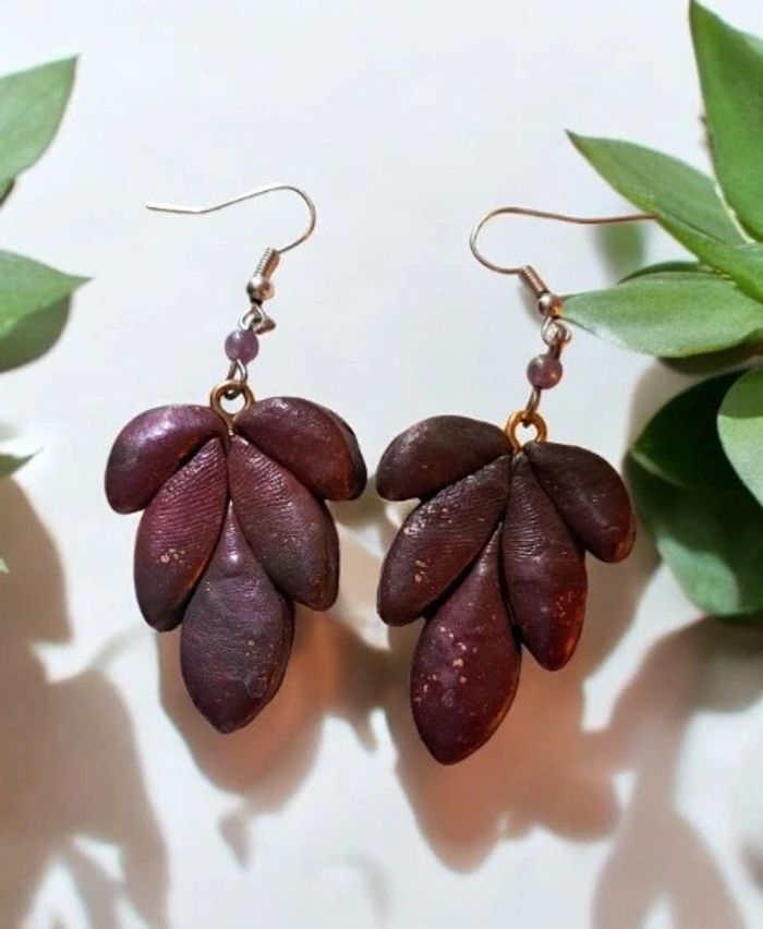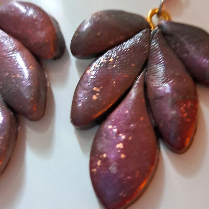 Boucles d'oreilles pendante avec pâte polymere couleur bordeaux avec petite paillettes forme feuille #boucles d'oreilles pendantes # boucles d'oreilles bleu et noir #boucles d'oreilles polymere #boucles d'oreilles fantaisies #boucledoreille # boucles d'oreilles Bohème #boutiqueindependante #bouclesdoreillespendantes #boucles d'oreilles résine #boucles d'oreilles multicolore