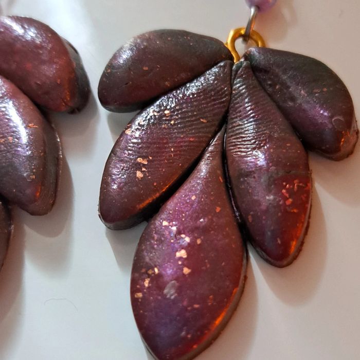 Boucles d'oreilles pendante en pate polymere feuilles - photo numéro 8