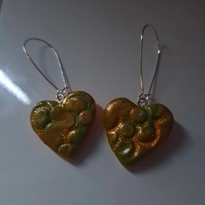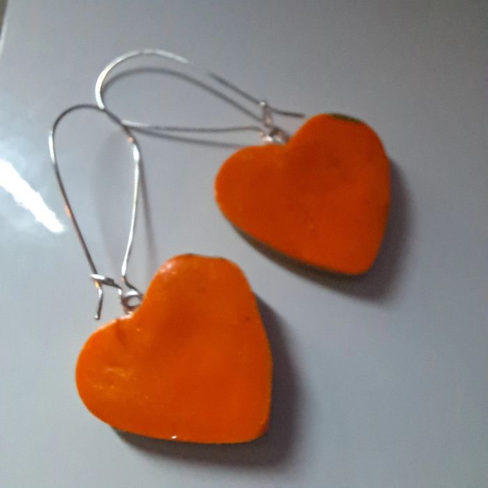 Boucles d'oreilles pendante en pâte polymere orange et vertes avec reflet métal orange sur fermoir dormeuse #boucles d'oreilles pendantes # boucles d'oreilles bleu et noir #boucles d'oreilles polymere #boucles d'oreilles fantaisies #boucledoreille # boucles d'oreilles Bohème #boutiqueindependante #bouclesdoreillespendantes #boucles d'oreilles résine #boucles d'oreilles multicolore