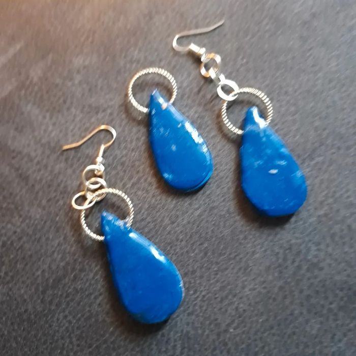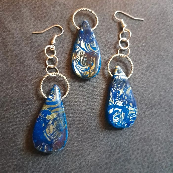 Parrurre boucles d'oreilles pendante avec pendentif assortie bleu - photo numéro 1