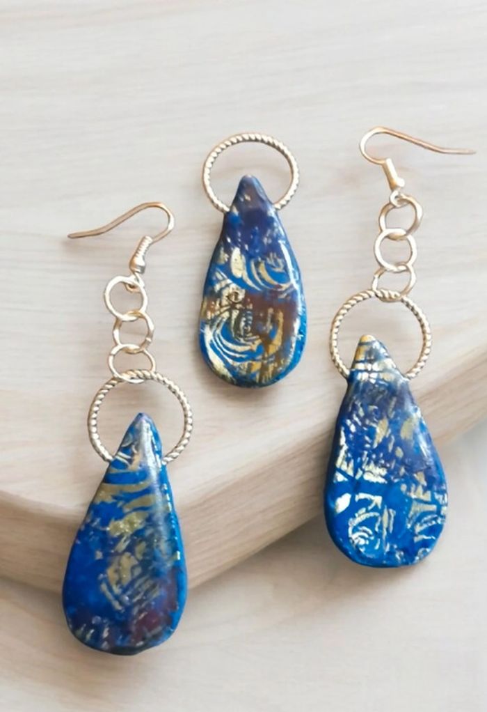 Parrurre boucles d'oreilles pendante avec pendentif assortie bleu - photo numéro 13