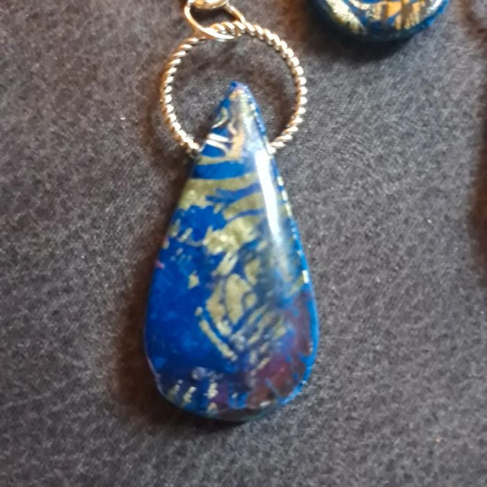 Parrurre boucles d'oreilles pendante avec pendentif assortie bleu - photo numéro 12