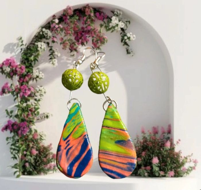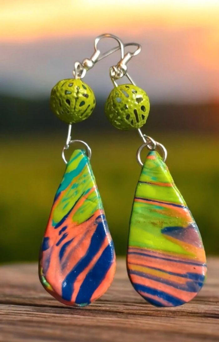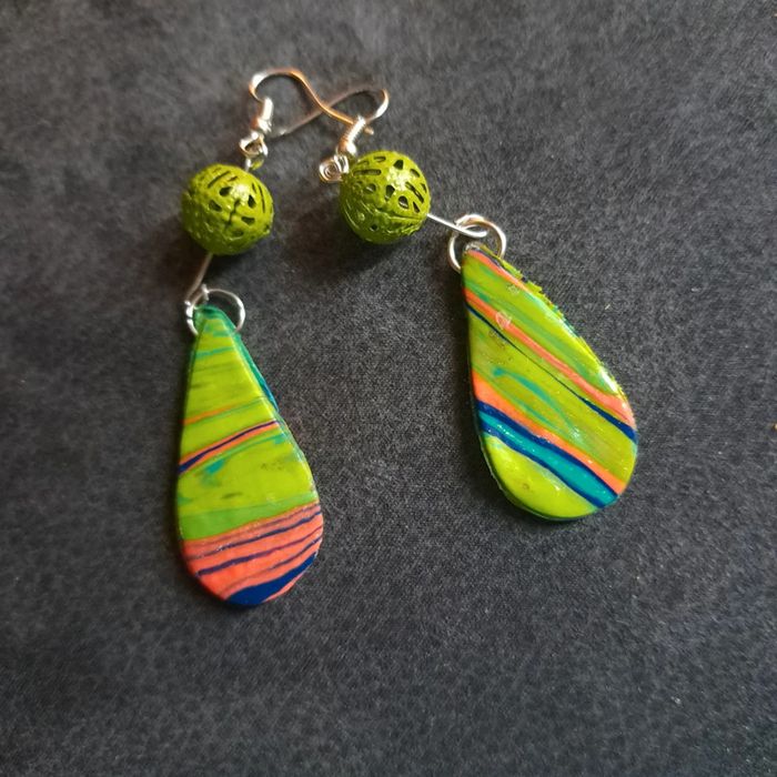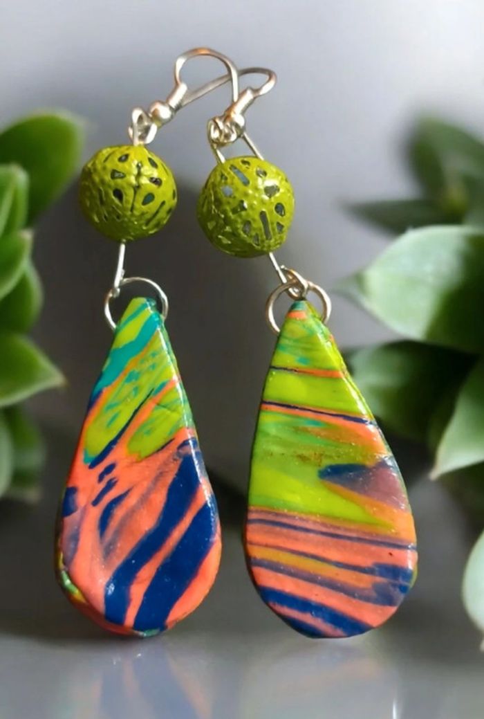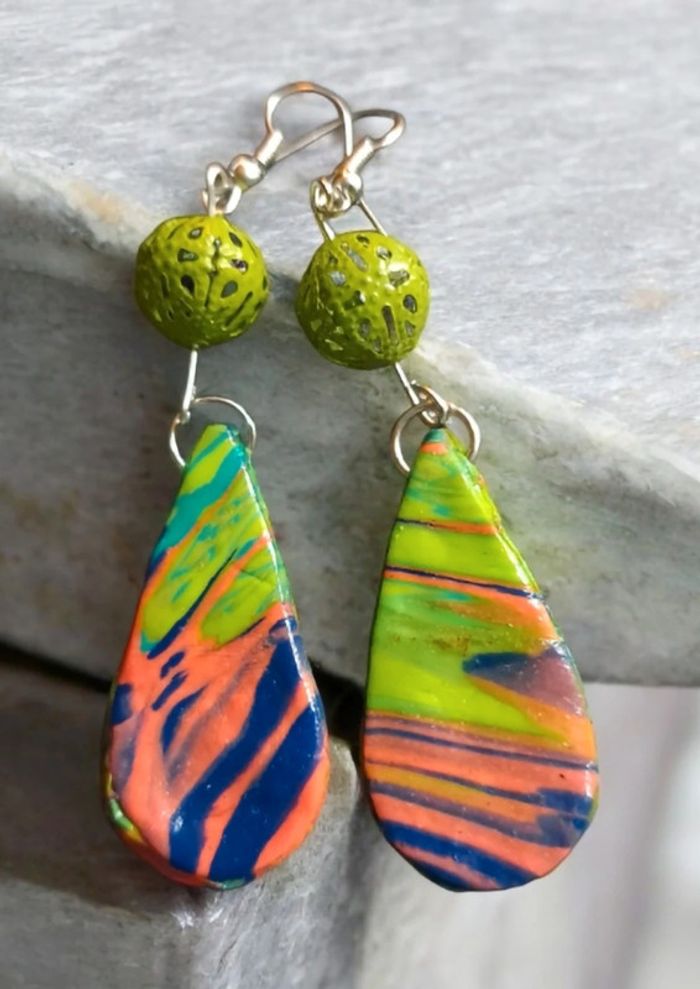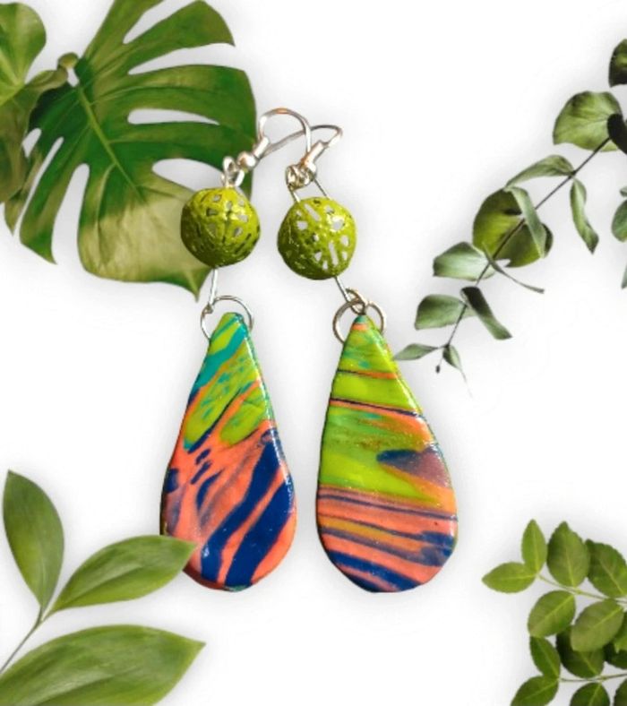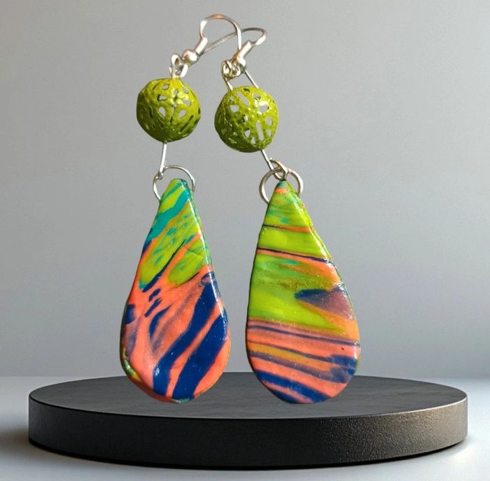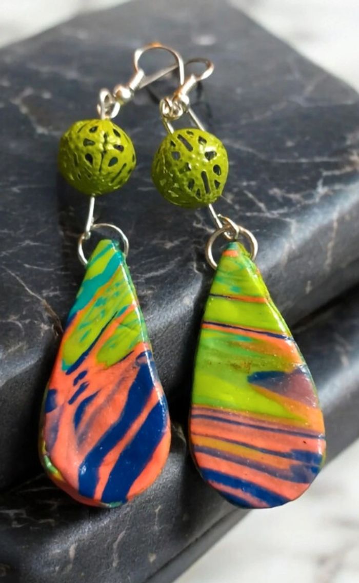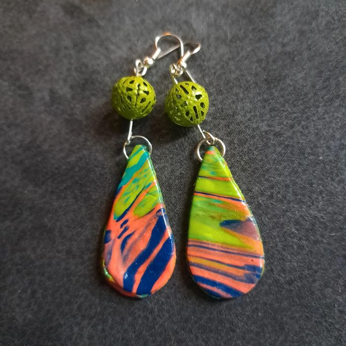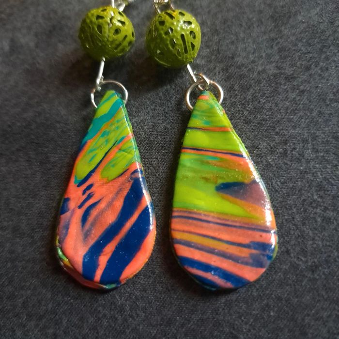 Boucles d'oreilles pendante avec pâte polymere multicolore très belle effet garanti unique et original #boucles d'oreilles pendantes # boucles d'oreilles bleu et noir #boucles d'oreilles polymere #boucles d'oreilles fantaisies #boucledoreille # boucles d'oreilles Bohème #boutiqueindependante #bouclesdoreillespendantes #boucles d'oreilles résine #boucles d'oreilles multicolore