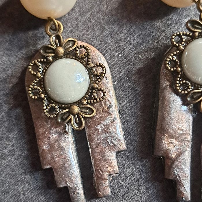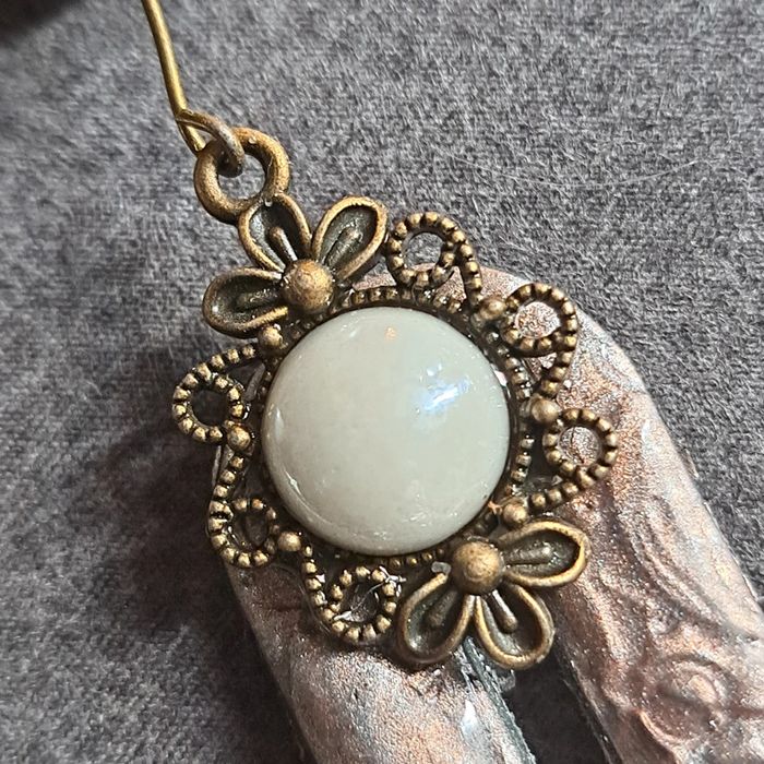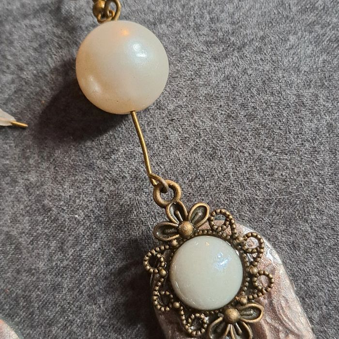 Boucles d'oreilles pendante baroque bronze et blanc - photo numéro 9